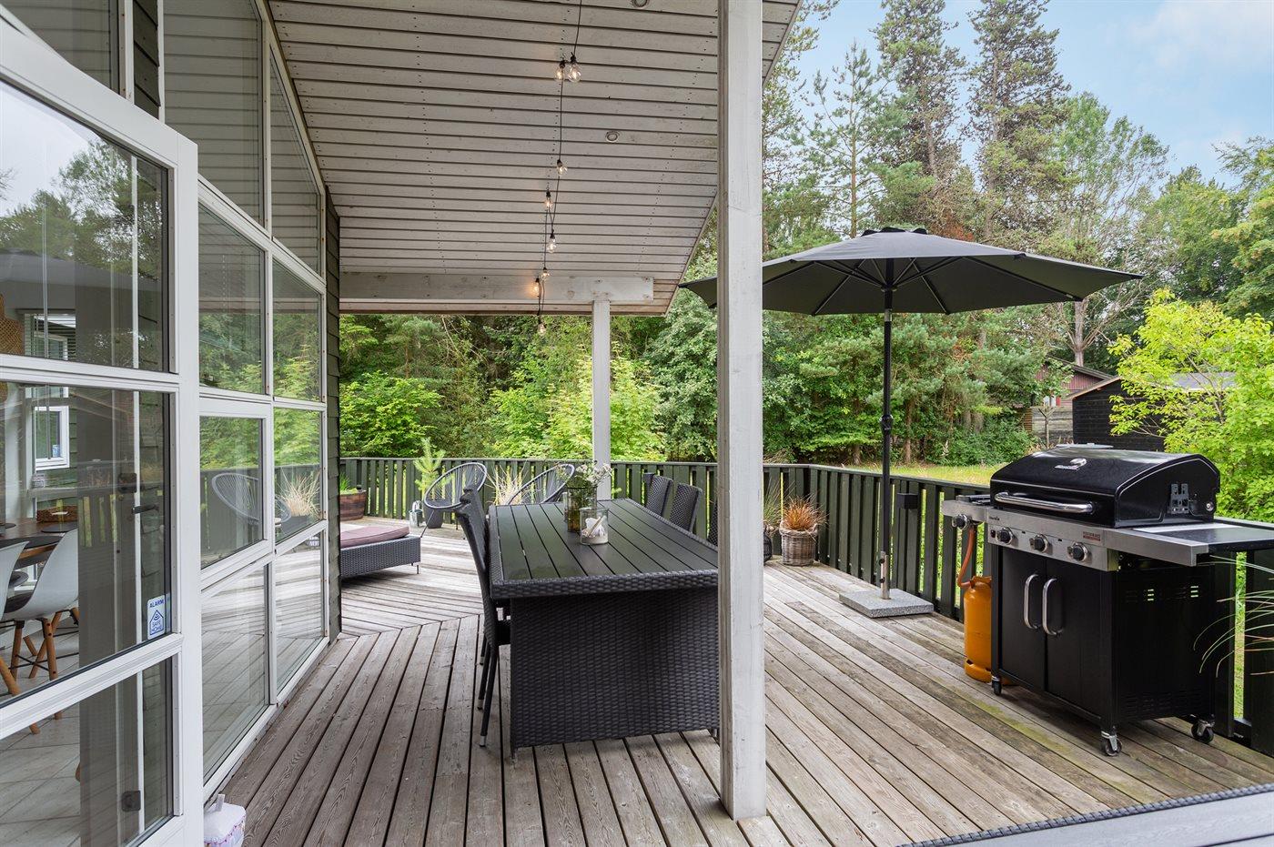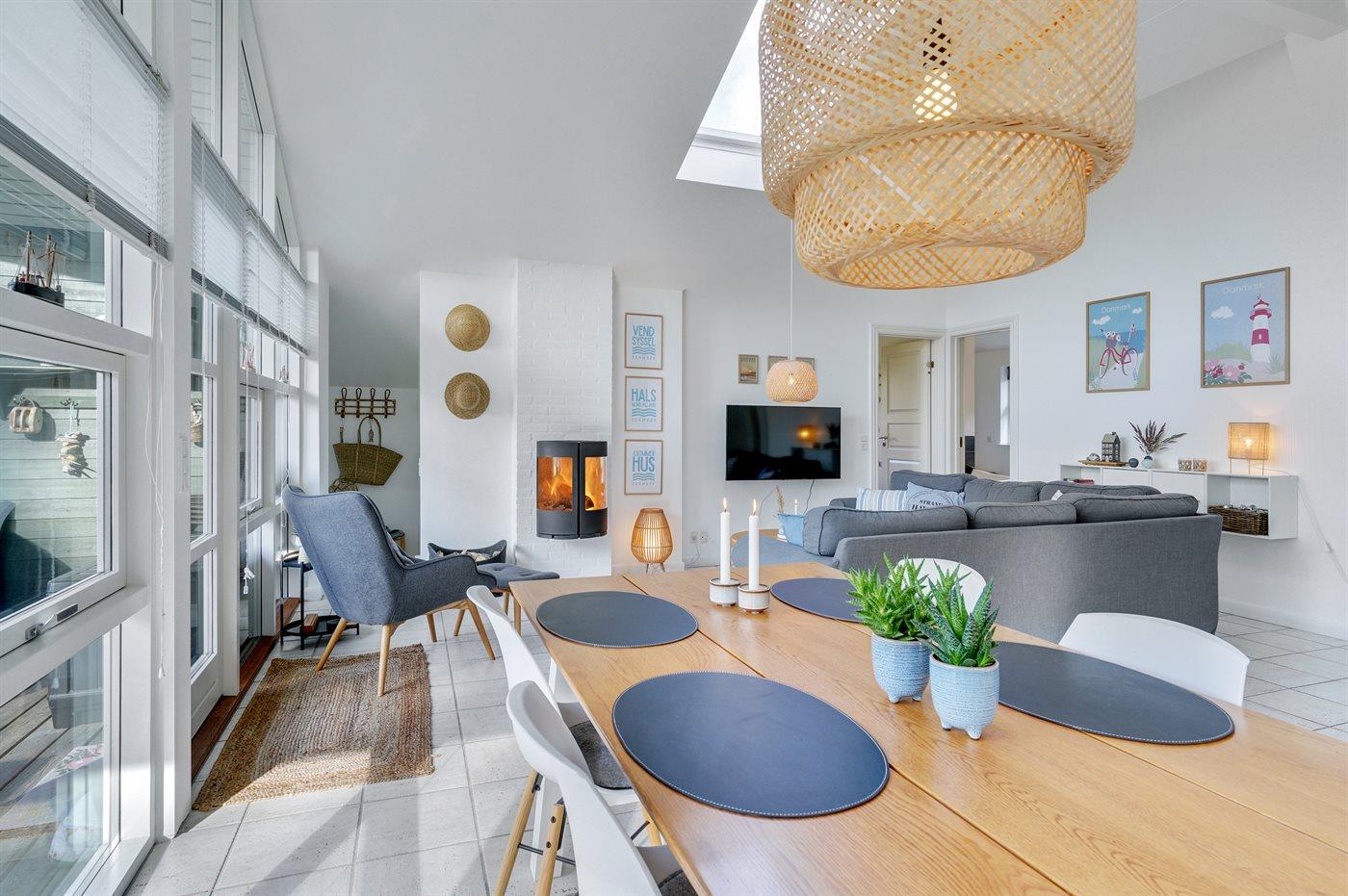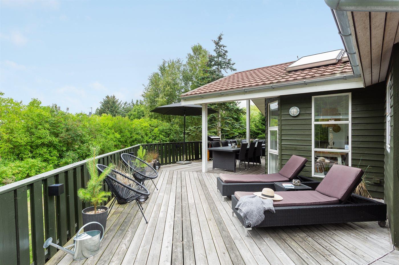 Dieses schöne und sehr gepflegte Ferienhaus liegt auf einem netten Grundstück - nur etwa 500 m vom Wasser und dem guten Strand entfernt. Das Haus hat eine gute Raumeinteilung und ist hell und modern eingerichtet, unter anderem ist das kleine Badezimmer komplett renoviert (2025). Genießen Sie die Zeit im Freien auf den schönen und teilweise überdachten Terrassen. Übrigens: Es fließt ein kleiner Bach durch das hinterste Teil des Grundstücks, daher sollten kleine Kinder unter Aufsicht gehalten werden.