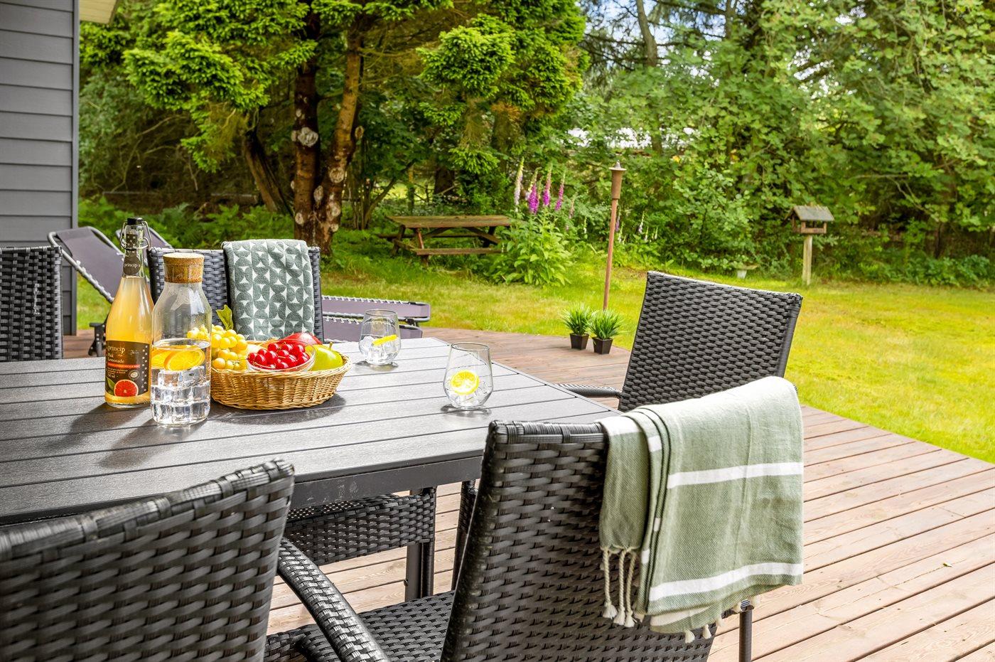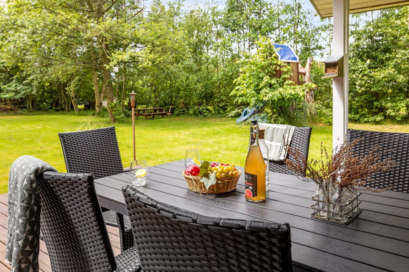 Dieses Ferienhaus liegt auf einem schönen Naturgrundstück in einem familienfreundlichen Feriengebiet. Auf dem Grundstück ist zwischen 2 Bäumen eine Hängematte montiert – hier können Sie es sich mit einem Buch gemütlich machen, während ihr Vierbeiner das Grundstück erforscht und die Kinder auf dem Rasen oder auf dem Spielturm spielen.
