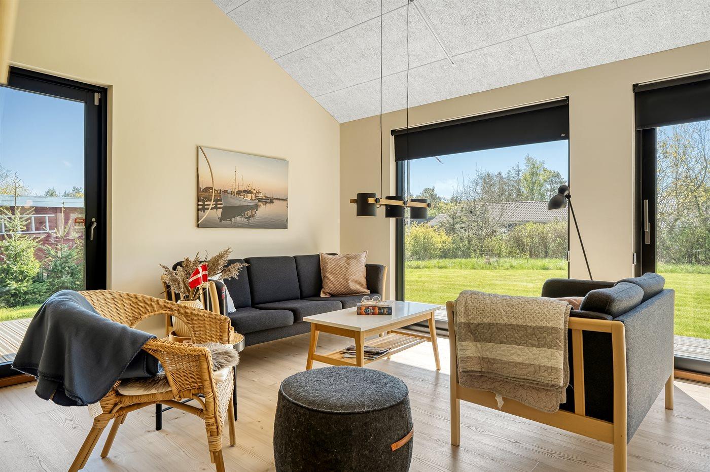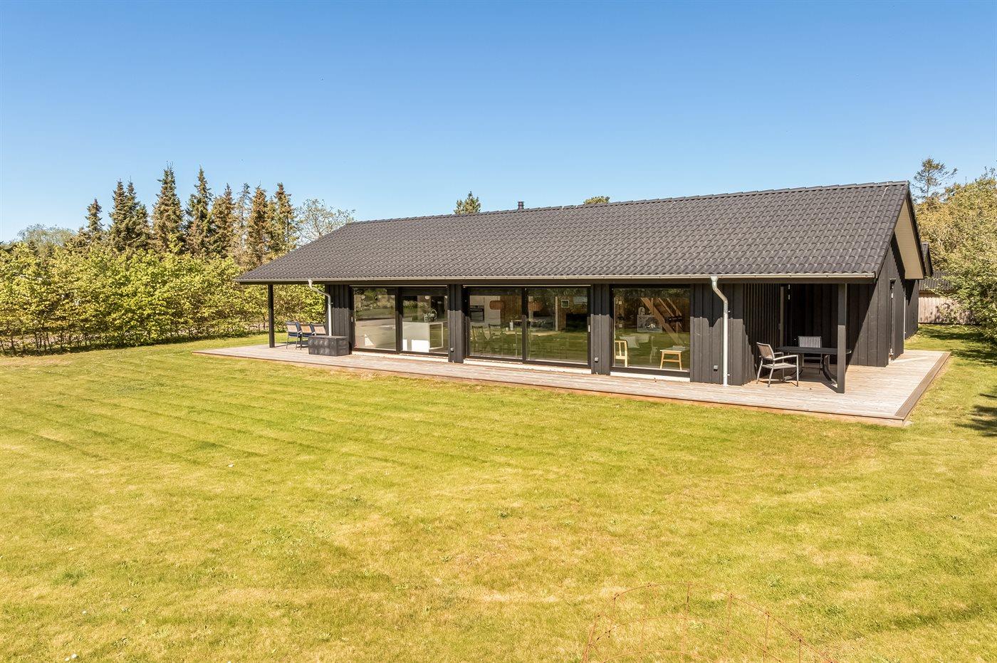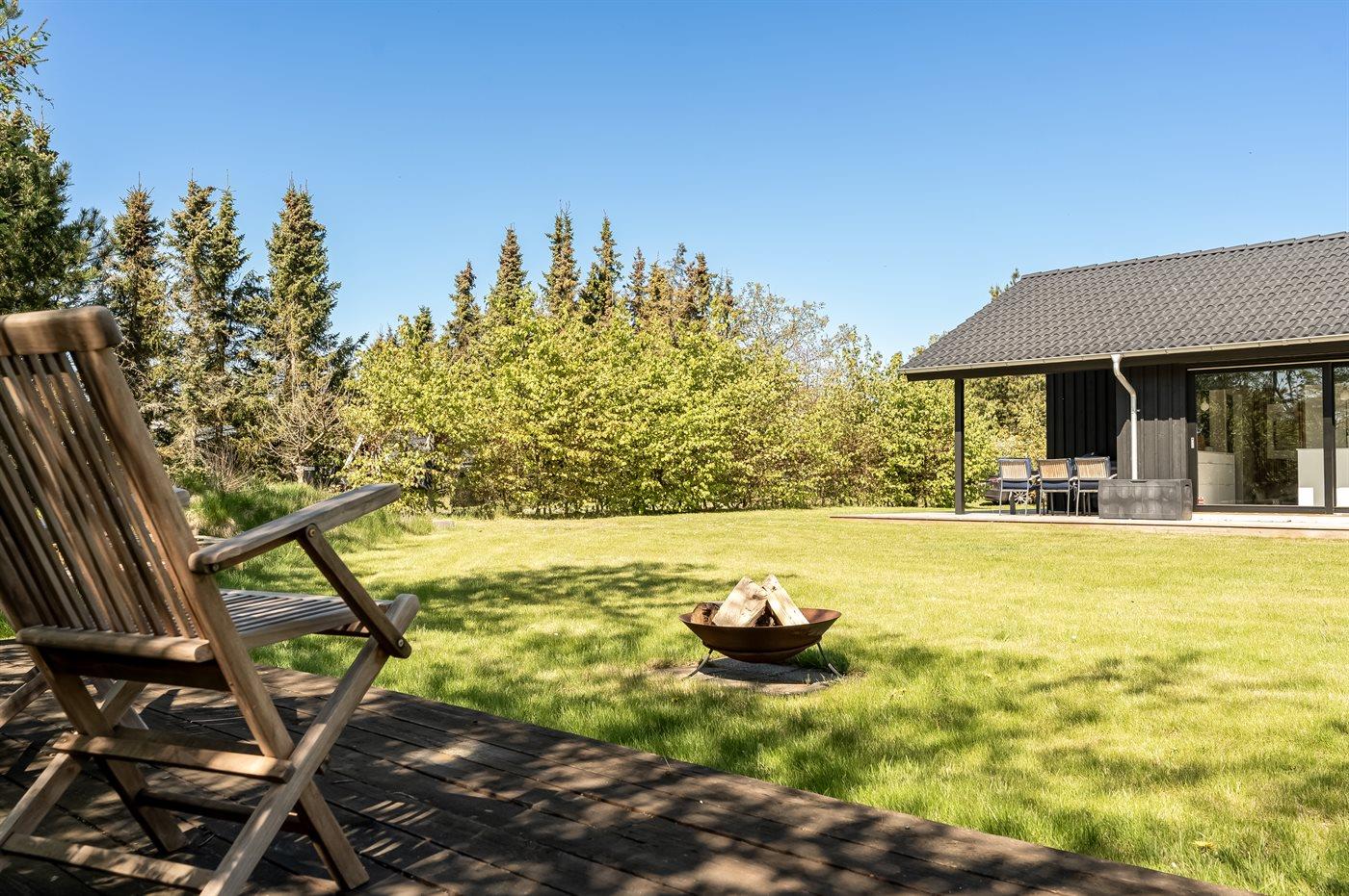Die Ferienunterkunft liegt auf einem 1265 m² großen Gartengrundstück.Naturgrundstück. Die Entfernung zum Meer beträgt 600 m. Die Entfernung zum Fjord beträgt 1200 m. Die nächste Einkaufsmöglichkeit liegt 1500 m entfernt. In einem Abstand von 730 m gibt es einen Golfplatz. Es steht ein offenes Terrassenareal zur Verfügung. Außerdem gibt es überdachte Terrasse. Sandkasten. Fußballtor.Lagerfeuerstelle. Es steht ein Grill zur Verfügung. Es ist ein Ladestecker für Elektroautos installiert. Ladestecker Typ 2. Parkplatz auf dem Grundstück.