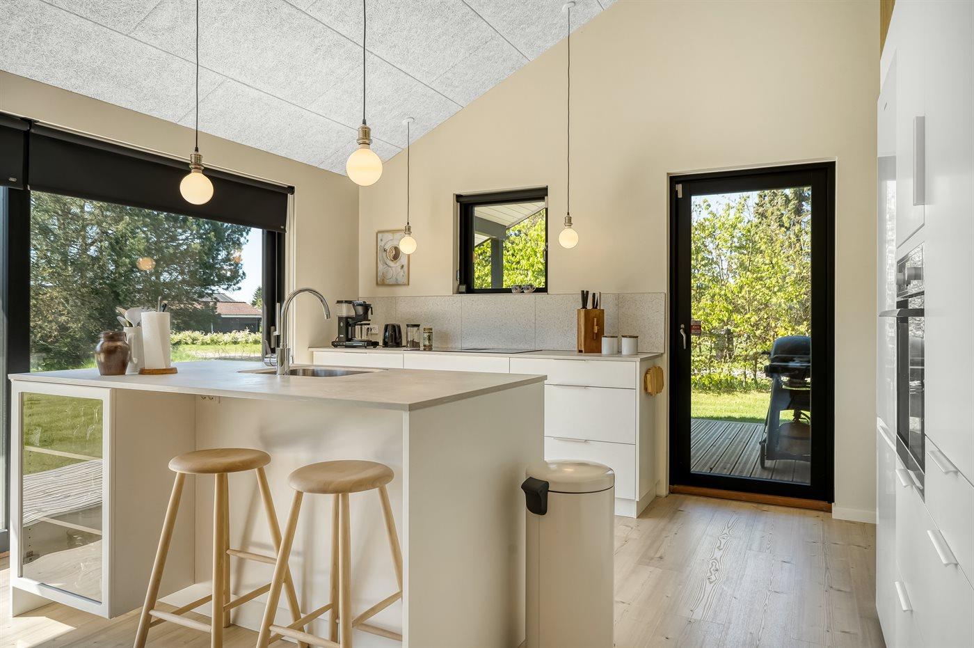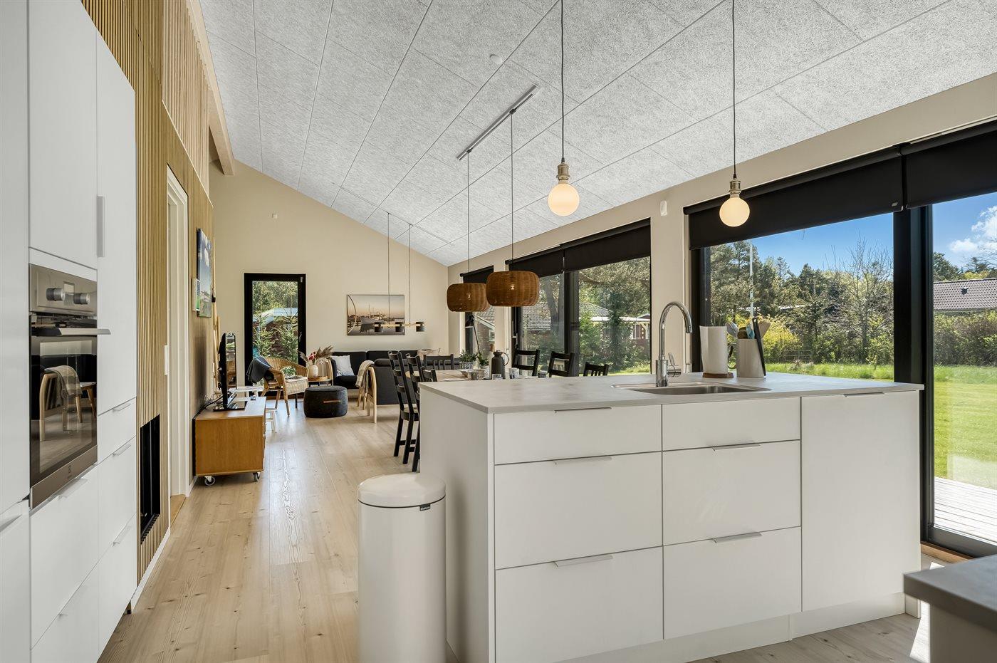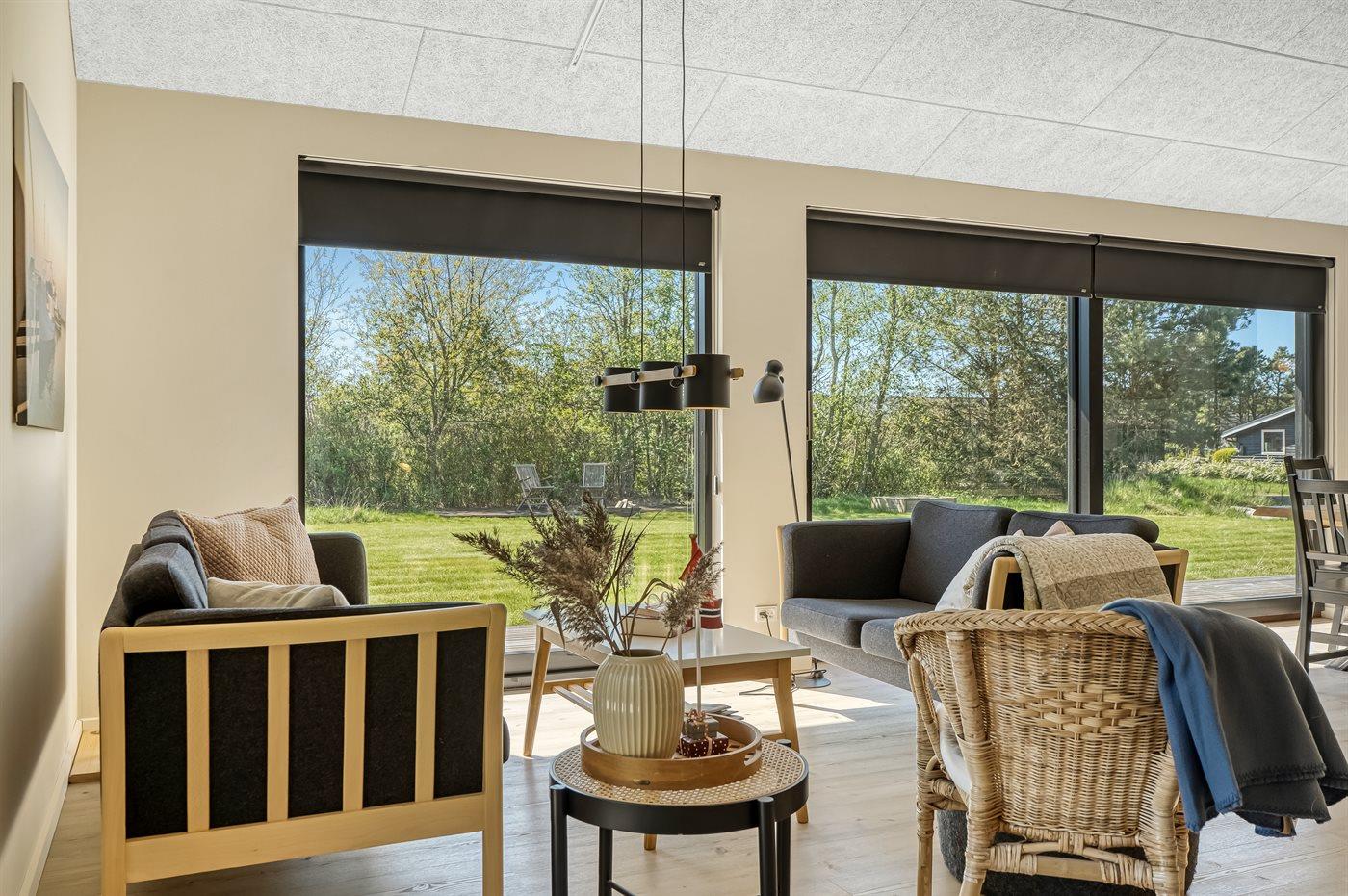 Die Ferienunterkunft liegt auf einem 1265 m² großen Gartengrundstück.Naturgrundstück. Die Entfernung zum Meer beträgt 600 m. Die Entfernung zum Fjord beträgt 1200 m. Die nächste Einkaufsmöglichkeit liegt 1500 m entfernt. In einem Abstand von 730 m gibt es einen Golfplatz. Es steht ein offenes Terrassenareal zur Verfügung. Außerdem gibt es überdachte Terrasse. Sandkasten. Fußballtor.Lagerfeuerstelle. Es steht ein Grill zur Verfügung. Es ist ein Ladestecker für Elektroautos installiert. Ladestecker Typ 2. Parkplatz auf dem Grundstück.