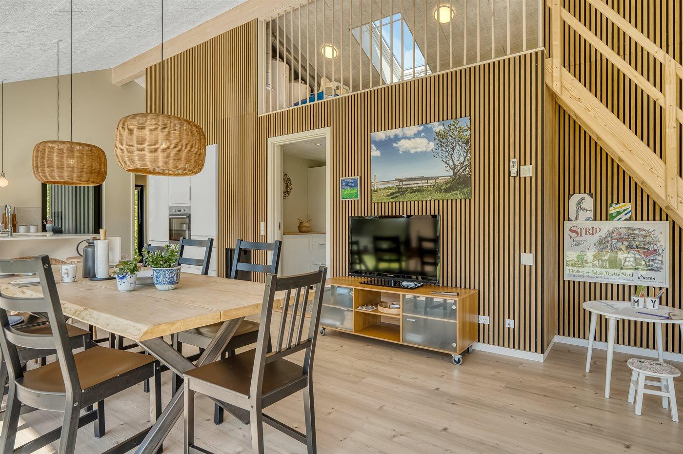 Ein Ferienhaus in landschaftlich ansprechender Umgebung. Das energieeffiziente Haus verfügt über Solarzellen und es wird mit Hilfe von einer Luft-Wasser-Wärmepumpe beheizt. Im Haus gibt es einen Zentralstaubsauger, der das Putzen zum Kinderspiel macht.