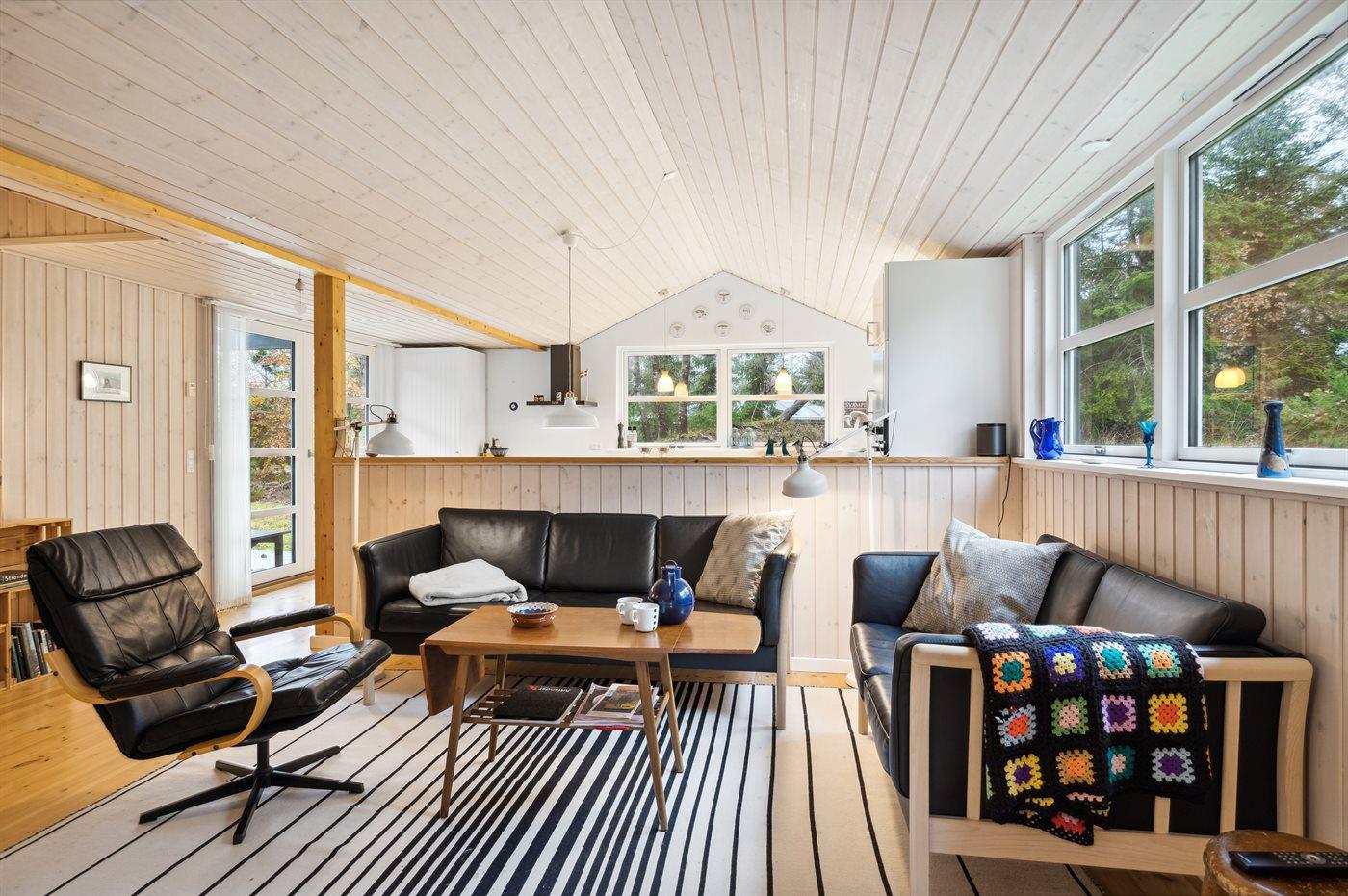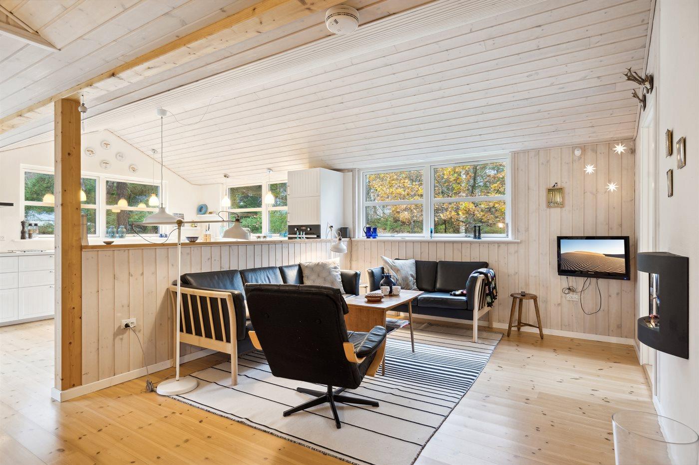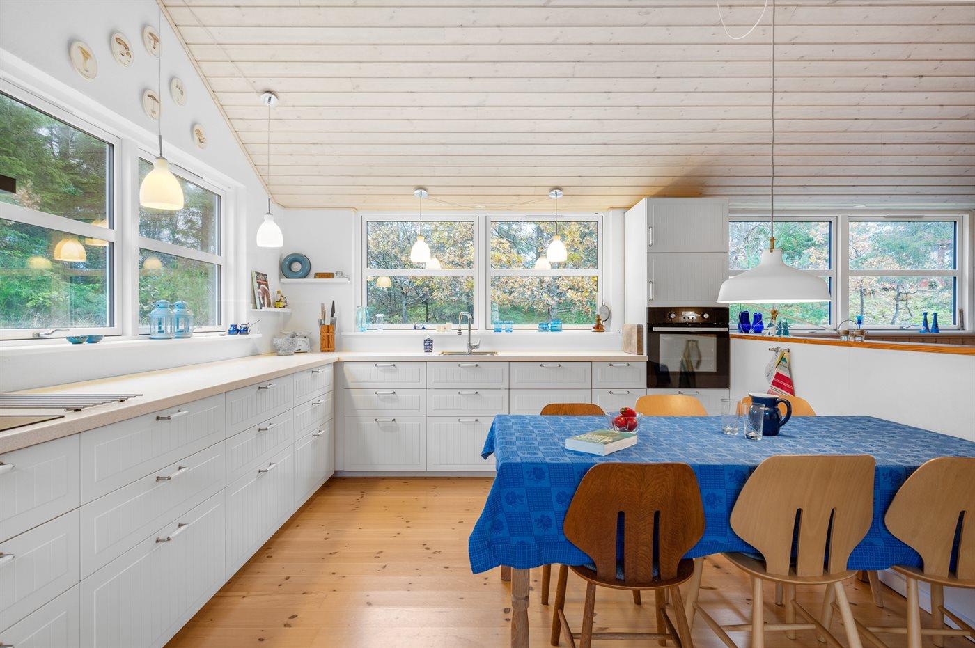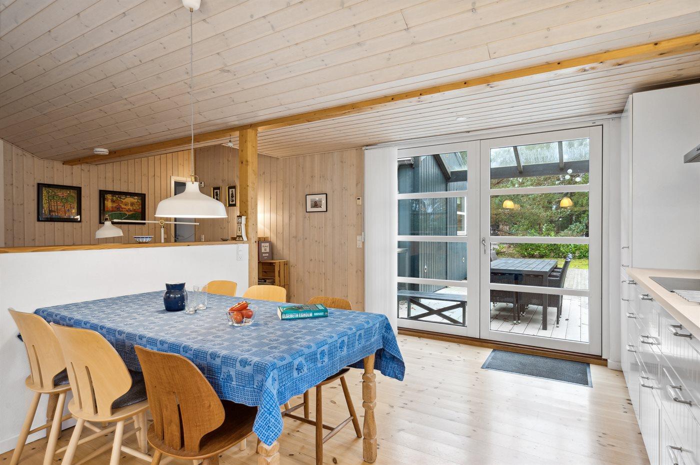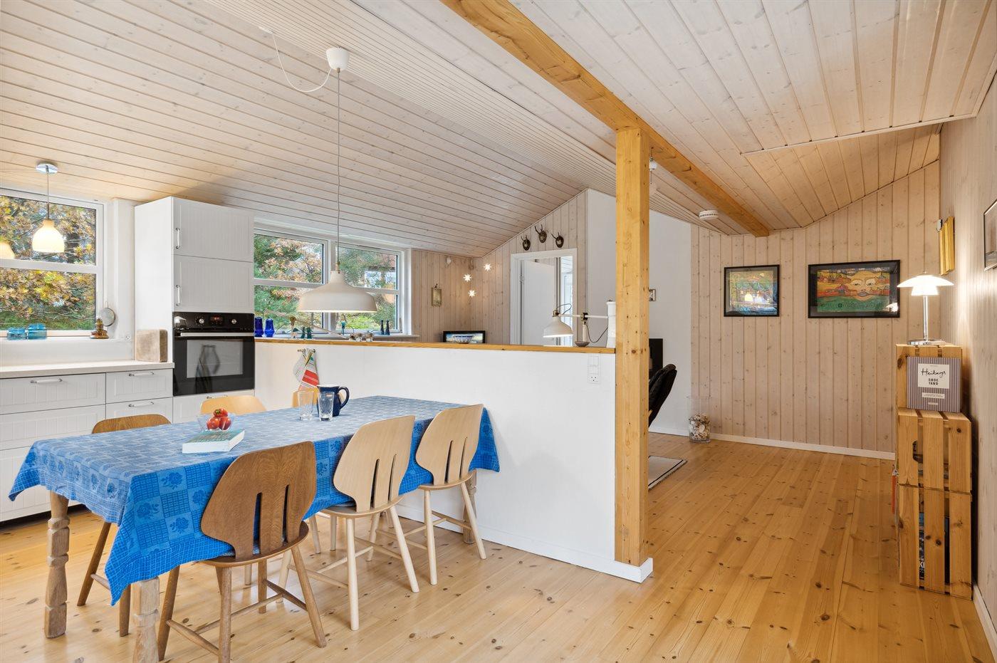 Im Inneren präsentiert sich das Ferienhaus in gutem Zustand. Das Herz des Hauses ist die große und helle Küche/Wohnzimmer-Kombination mit viel Tageslicht und direktem Zugang zur herrlichen Terrasse. Das Ferienhaus ist sehr gut ausgestattet, und es gibt ausreichend Platz für z.B. eine Familie mit Kindern, die vielleicht auch die Großeltern mit in den Urlaub nehmen möchte - die Möglichkeiten sind vielfältig in diesem schönen Ferienhaus. Die Ferienorte Hou und Hals sind nur etwa 2-4 Kilometer entfernt und bieten gute Einkaufsmöglichkeiten sowie eine wirklich gemütliche Hafenumgebung mit Eisdielen und Cafés, u.a.