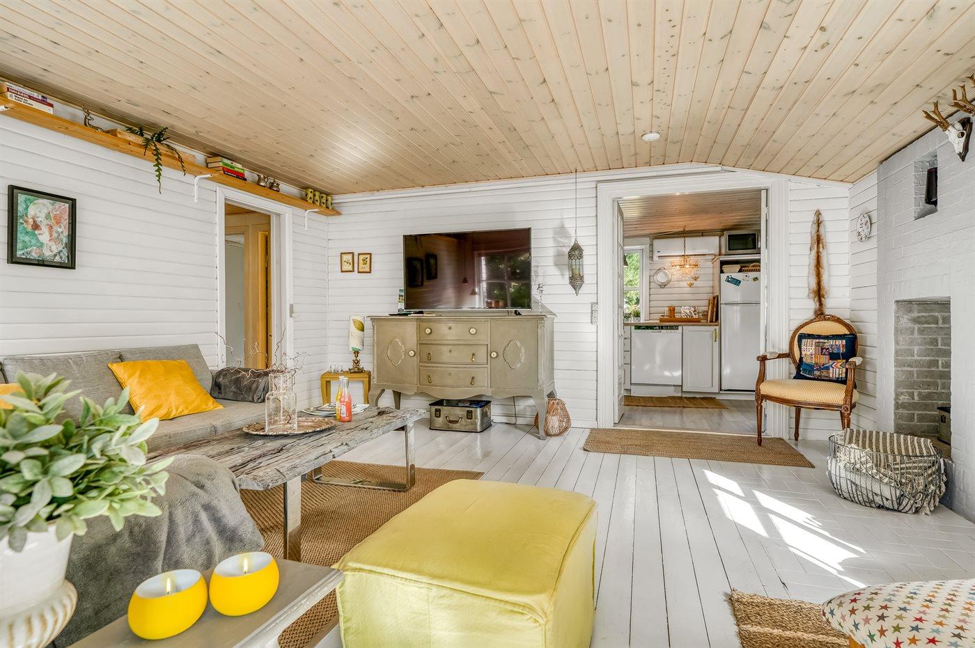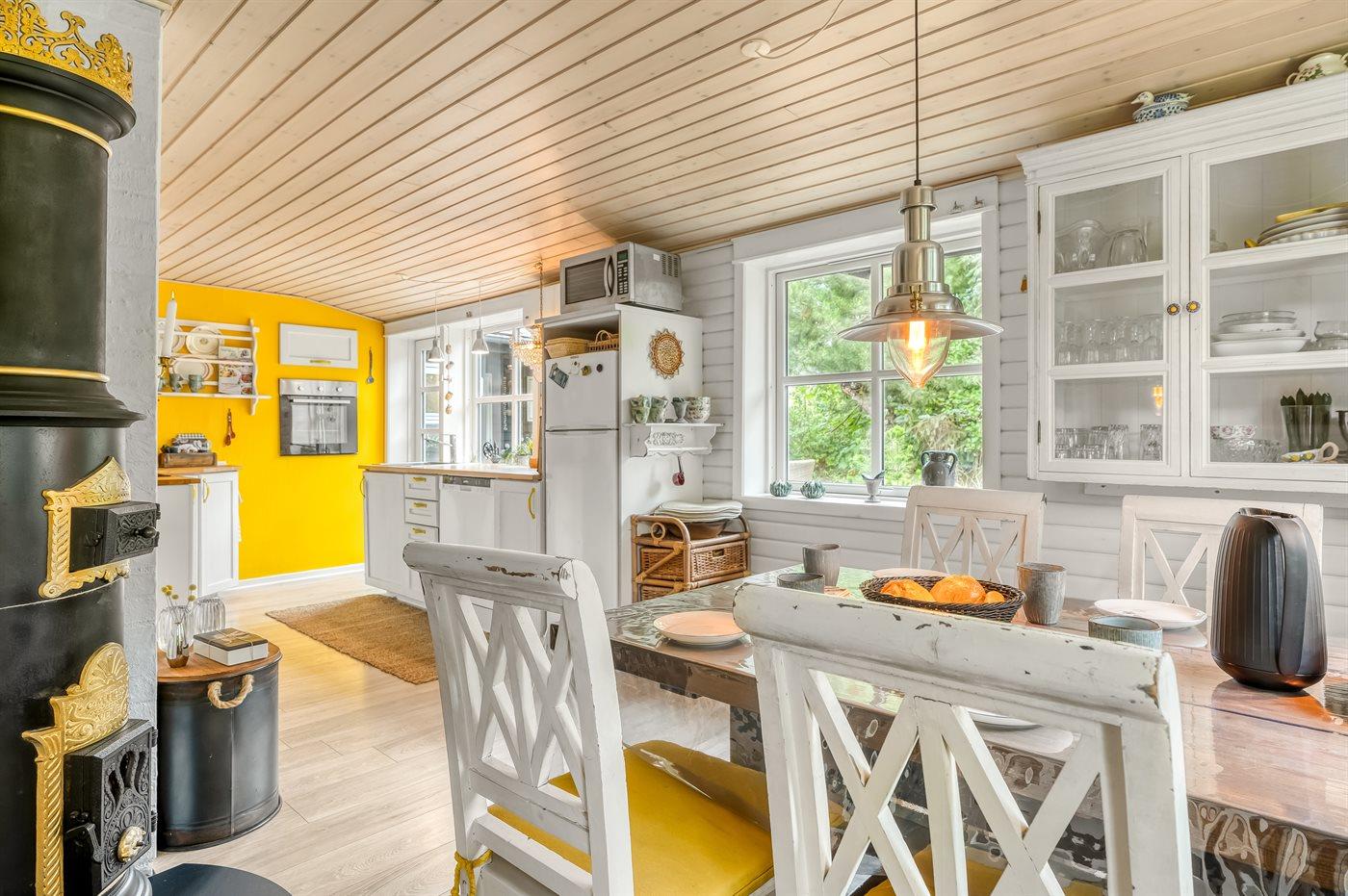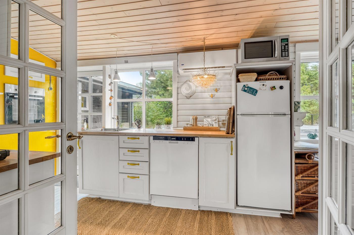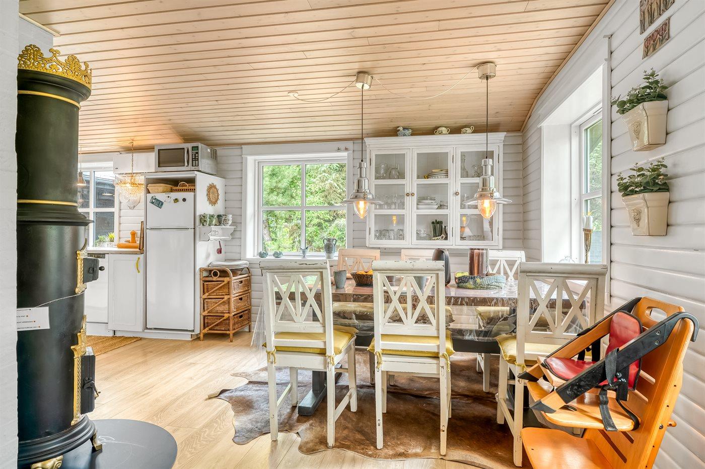 Herrlighes Ferienhaus mit attraktiver Lage in der Nähe des schönen kinderfreundlichen Sandstrandes. Das Ferienhaus wurde kontinuierlich renoviert und ist eine wahre idyllische Oase im Stil eines Strandhauses. Der Garten und die Terrassen bieten kleine gemütliche Ecken, sodass für jeden etwas dabei ist.