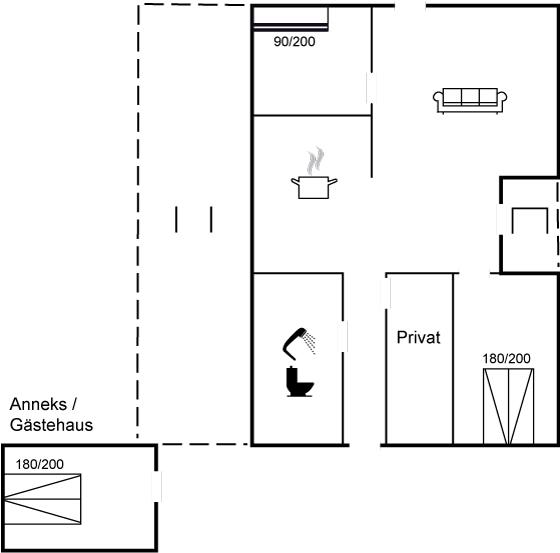 Die Schlafplätze verteilen sich auf 3 Schlafräume. 4 Schlafplätze in Doppelbetten. 2 Schlafplätze in einem Etagenbett. 2 von diesen Schlafplätzen befinden sich im Gästehaus.