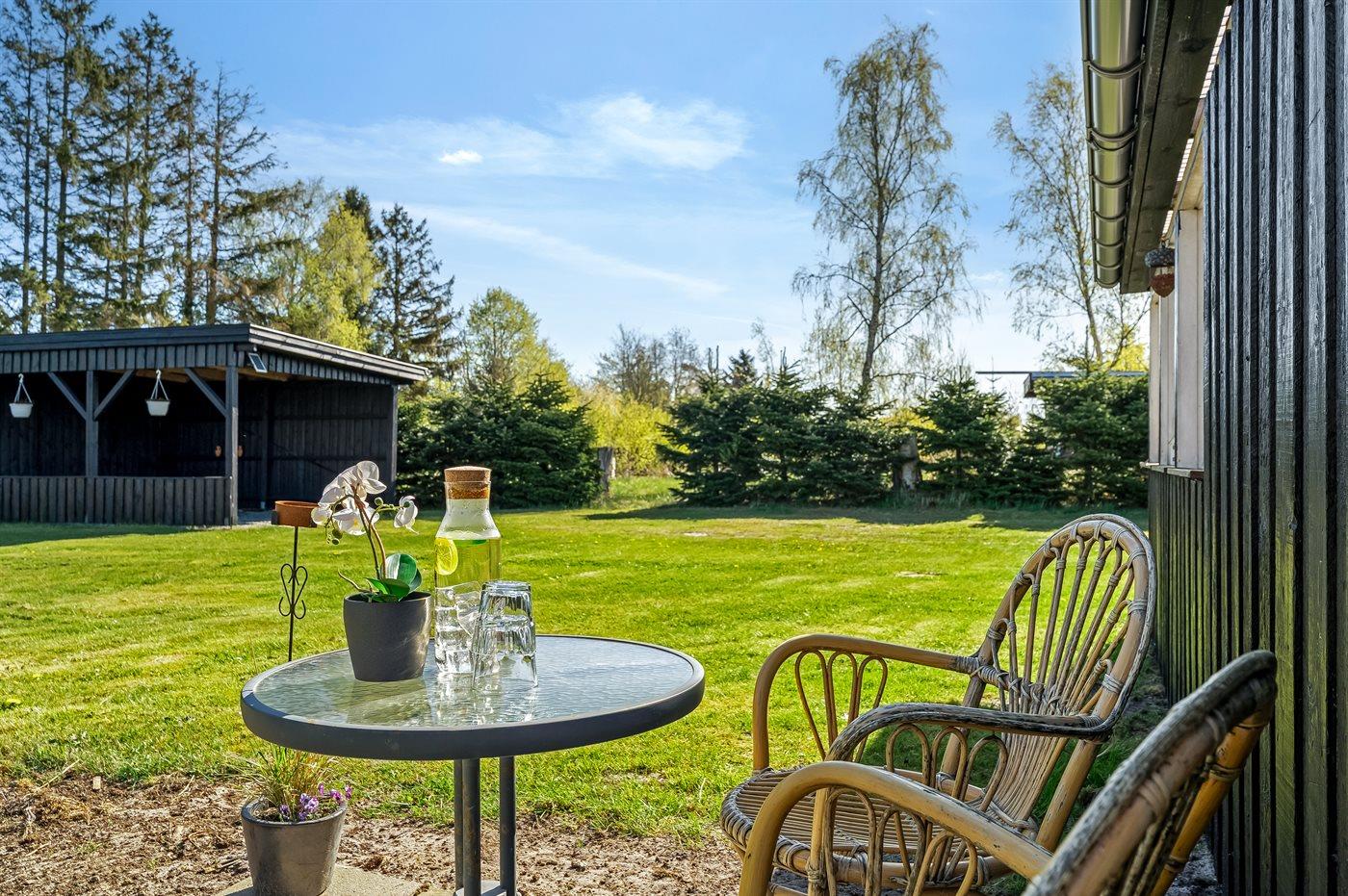 Hier könnt ihr euren Urlaub in ruhiger Umgebung genießen – mit sowohl einer offenen als auch einer überdachten Terrasse. Perfekt zum Entspannen in der Sonne oder für gemütliche Grillabende mit einem Kugelgrill, ganz unabhängig vom Wetter. Der große Rasen bietet viel Platz für Spiel, Ballspiele und Aktivitäten unter freiem Himmel. Ihr könnt auch eine Außendusche nutzen.