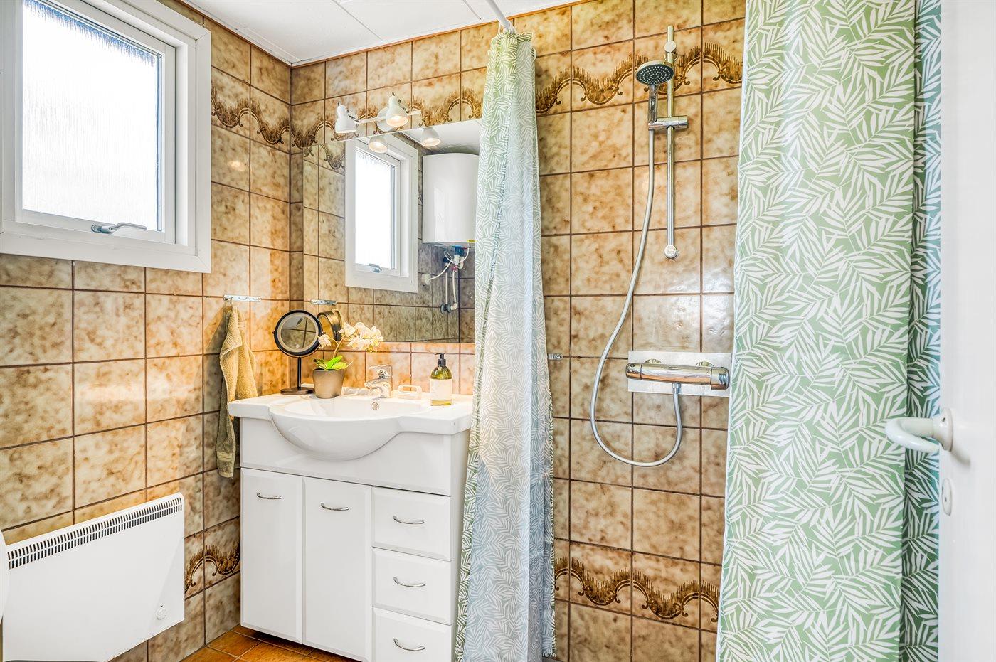 Es gibt 1 Badezimmer mit Duschnische sowie 1 separate Toilette.