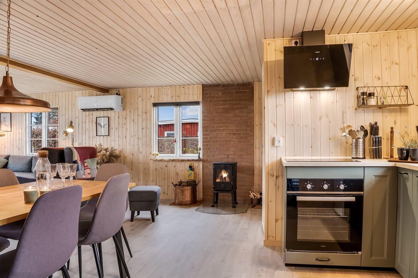 Gemütliches Ferienhaus in ruhiger Lage mit Terrasse, Kaminofen und Platz für Haustiere nahe dem Meer in Hals, Dänemark.