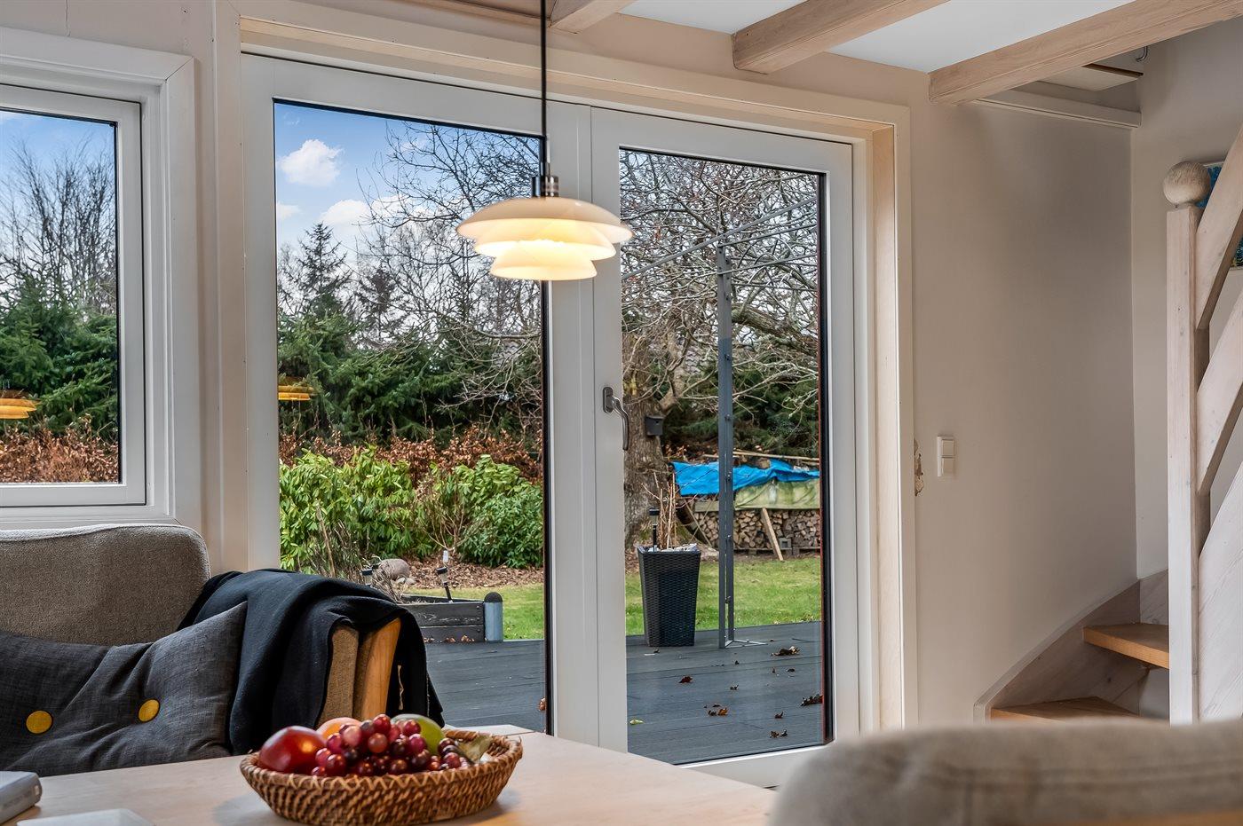 Die Ferienunterkunft liegt auf einem 1203 m² großen Gartengrundstück. Die Entfernung zum Meer beträgt 220 m. Die Entfernung zum Fjord beträgt 2420 m. Die nächste Einkaufsmöglichkeit liegt 2520 m entfernt. In einem Abstand von 1960 m gibt es einen Golfplatz. Es steht ein offenes Terrassenareal zur Verfügung. Außerdem gibt es überdachte Terrasse. Außendusche. Es steht ein Grill zur Verfügung. Parkplatz auf dem Grundstück.