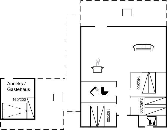 Die Schlafplätze verteilen sich auf 4 Schlafräume. 4 Schlafplätze in Doppelbetten. 3 Schlafplätze in Einzelbetten. 2 Schlafplätze auf einer Doppelschlafcouch. 2 von diesen Schlafplätzen befinden sich im Gästehaus.