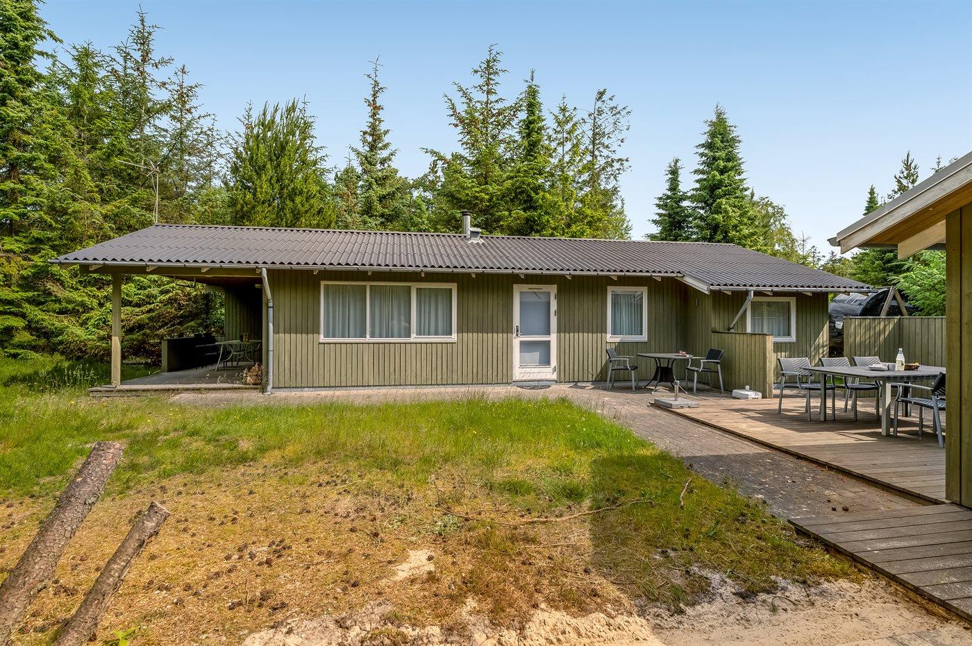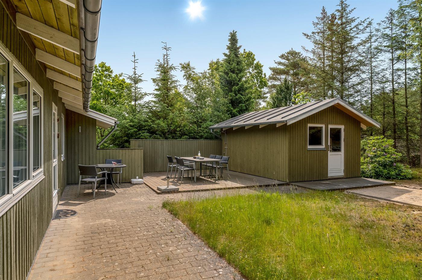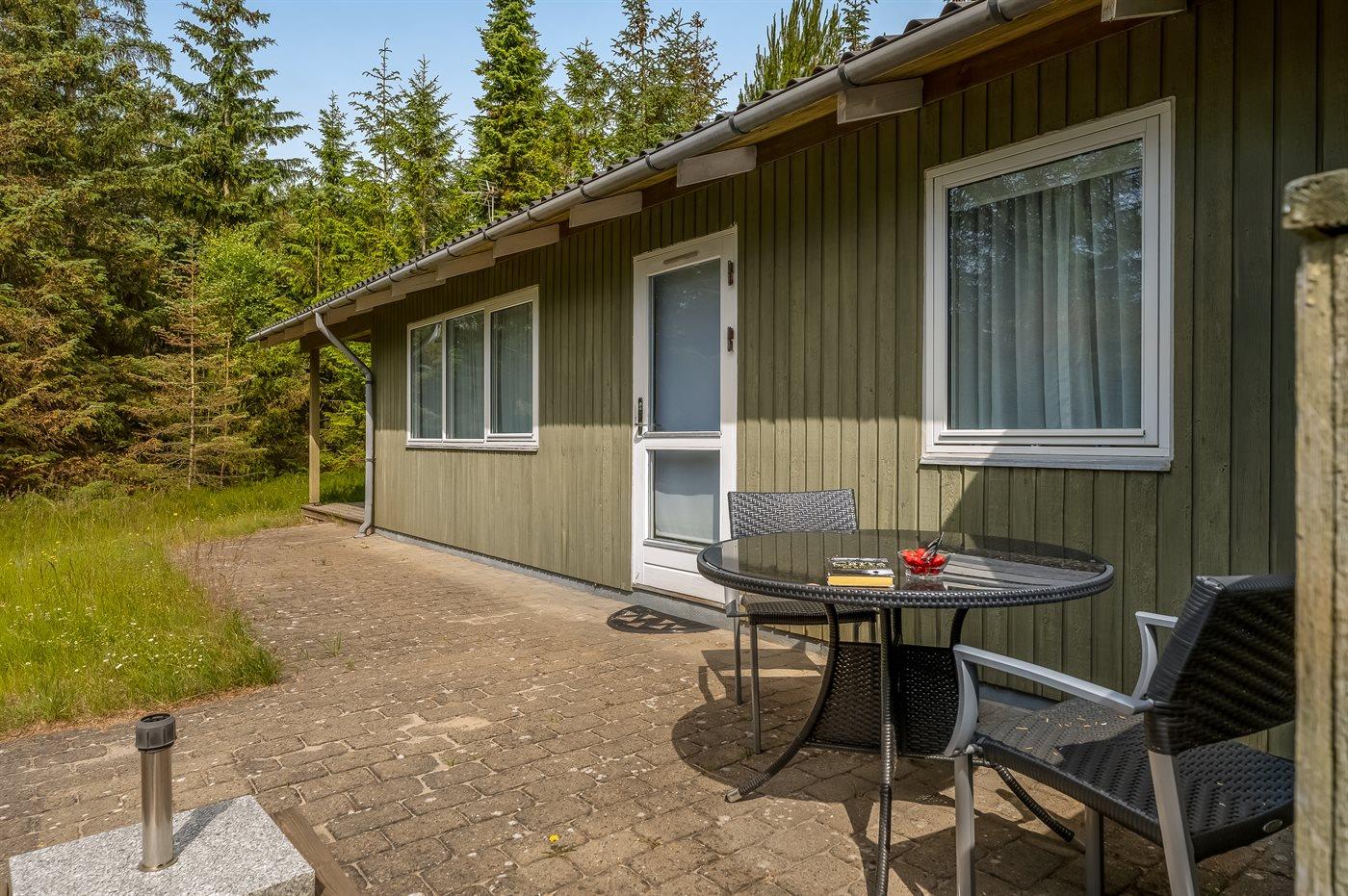 Ein nettes Ferienhaus mit ungestörter Lage auf einem schönen Naturgrundstück. Der Garten ist komplett privat und von Bäumen umgeben, welches eine friedliche und entspannte Atmosphäre schafft.