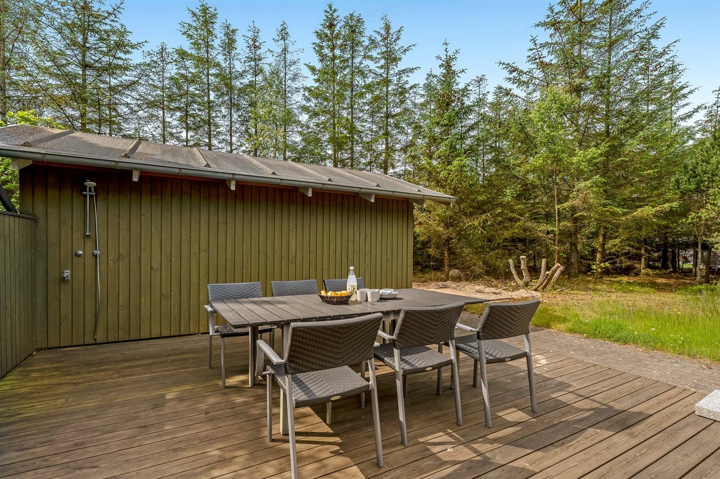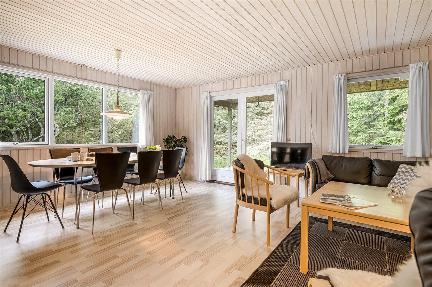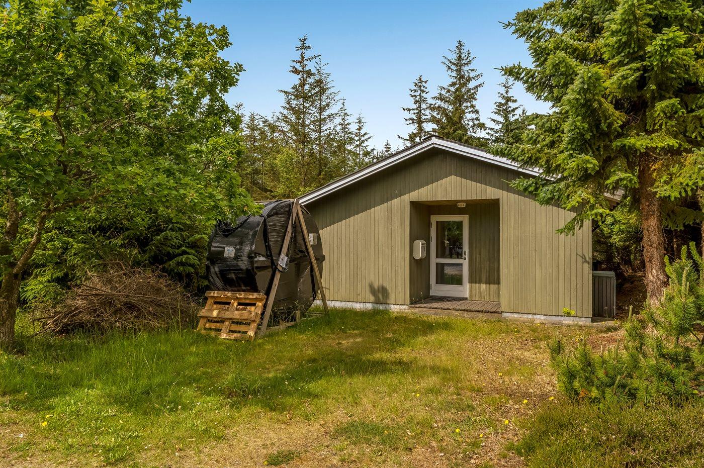 Ein nettes Ferienhaus mit ungestörter Lage auf einem schönen Naturgrundstück. Der Garten ist komplett privat und von Bäumen umgeben, welches eine friedliche und entspannte Atmosphäre schafft.