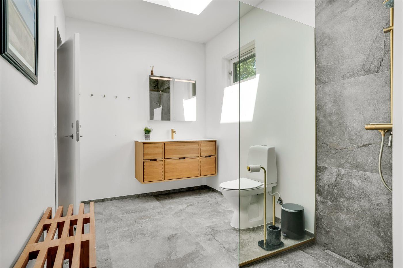 Es gibt 1 Badezimmer mit Duschnische und 2 Toiletten, davon 1 Gästetoilette. Fußbodenheizung in 1 Badezimmer. Fußbodenheizung in der Gästetoilette. In der infraroten Sauna können Sie sich so richtig entspannen.