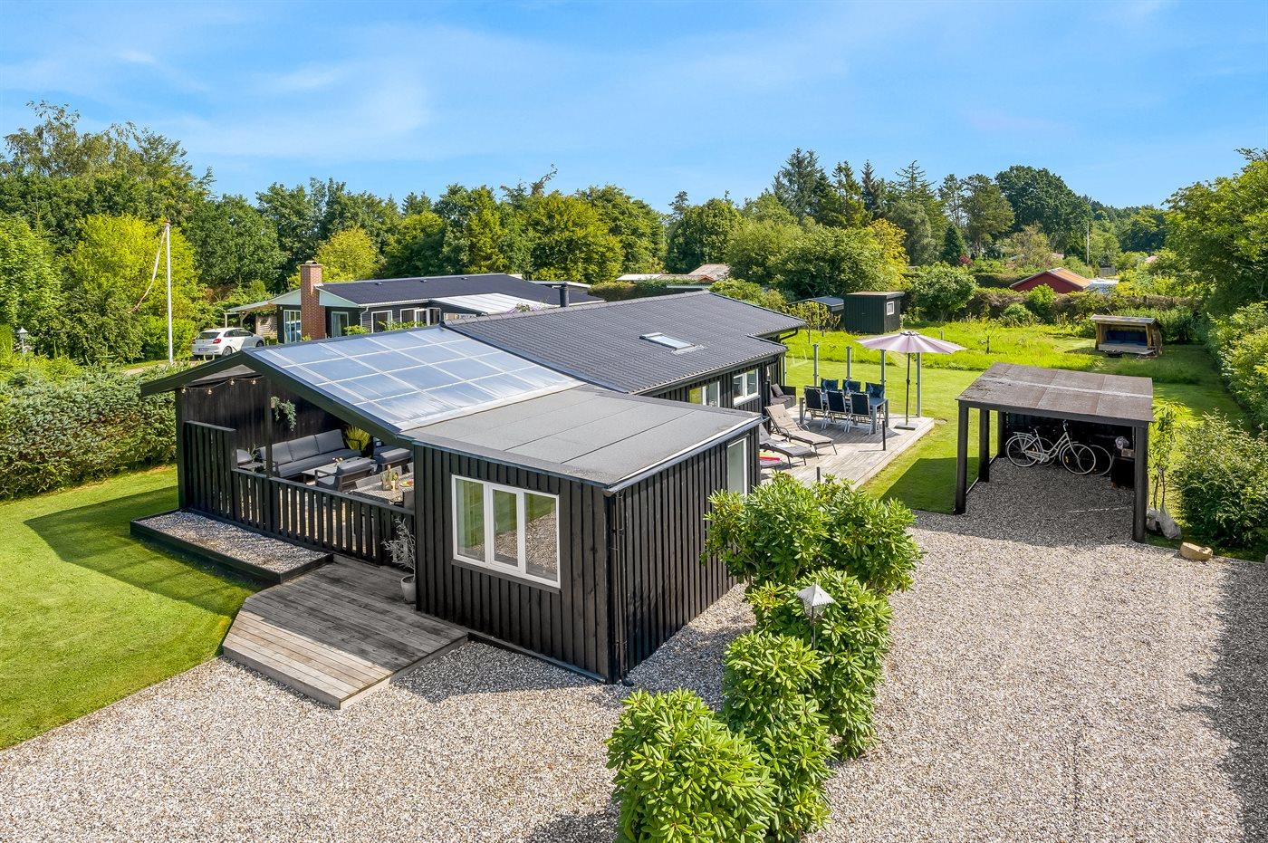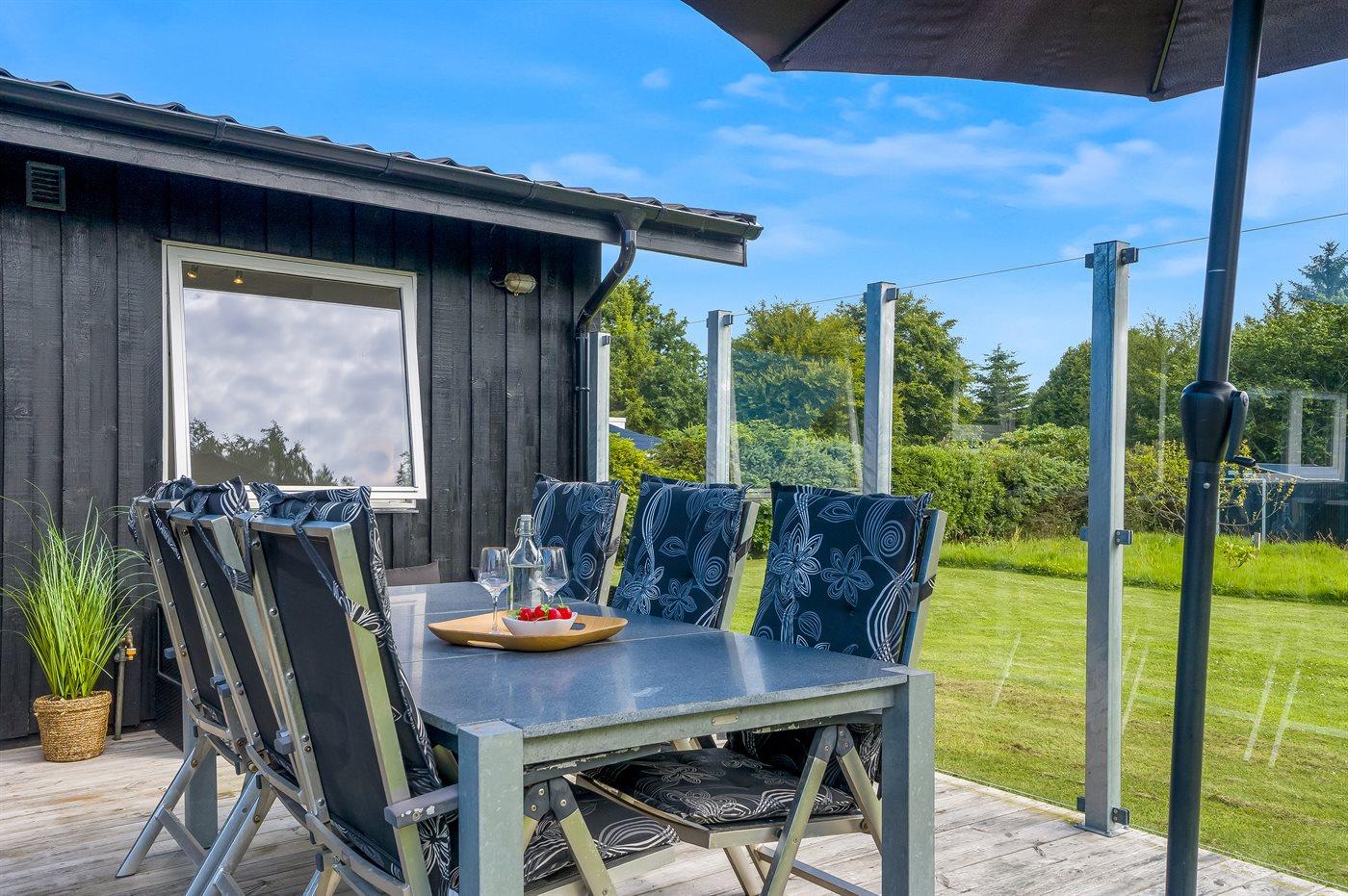 Gemütliches Ferienhaus in Hals mit überdachter Terrasse, Feuerstelle und modernem Komfort für erholsame Urlaubstage.