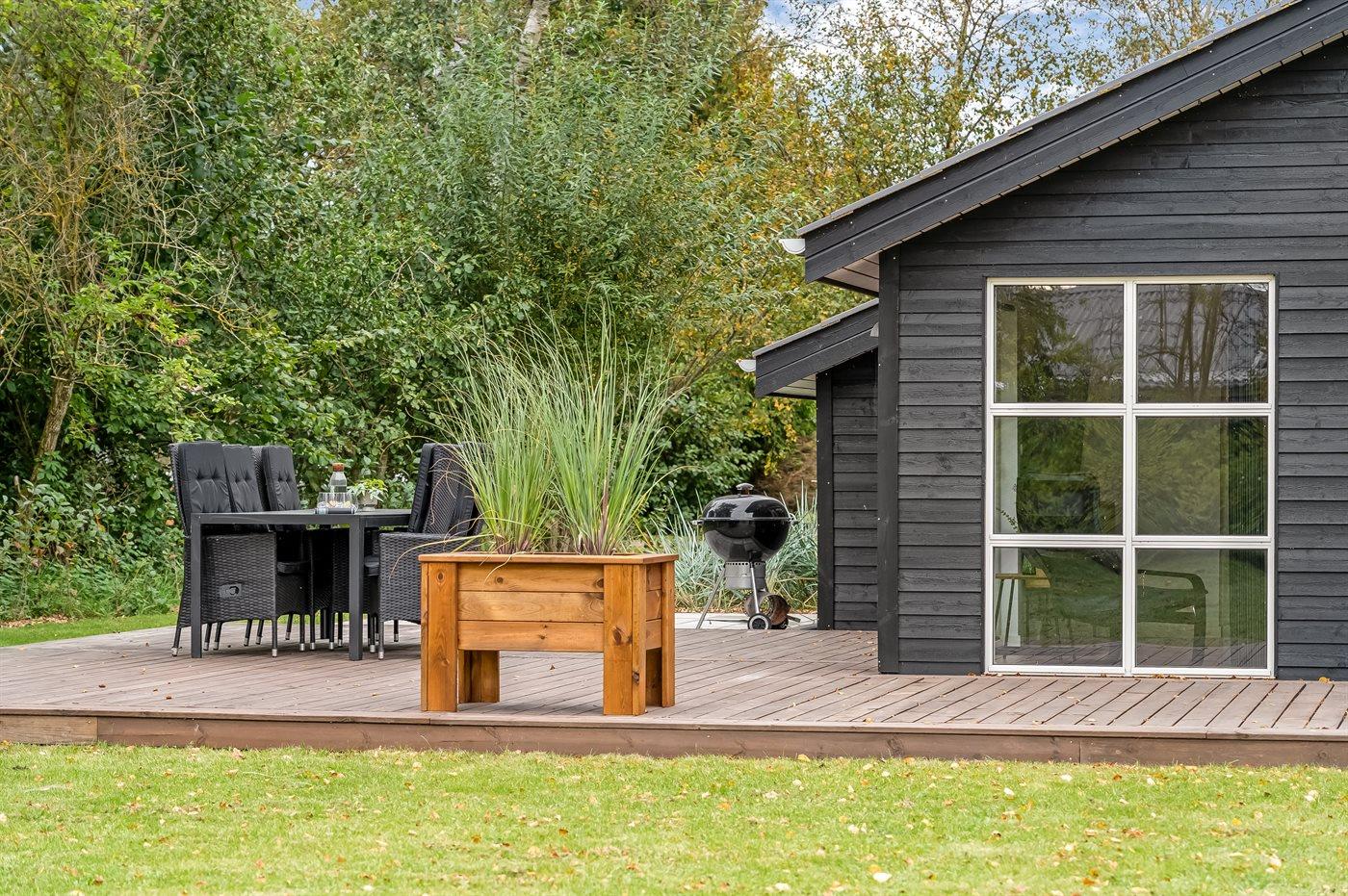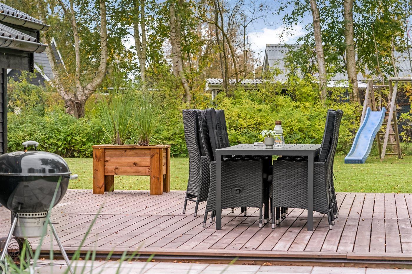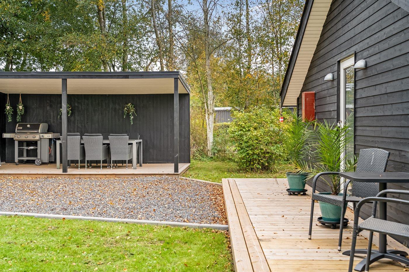 Die Ferienunterkunft liegt auf einem 1110 m² großen Gartengrundstück. Die Entfernung zum Meer beträgt 870 m. Die Entfernung zum Fjord beträgt 5800 m. Die nächste Einkaufsmöglichkeit liegt 2100 m entfernt. In einem Abstand von 5280 m gibt es einen Golfplatz. Es steht ein offenes Terrassenareal zur Verfügung. Außerdem gibt es überdachte Terrasse. Schaukel. Sandkasten. Rutsche. Es stehen zwei Grill zur Verfügung (einer für Gas und einer für Kohle). Parkplatz auf dem Grundstück.