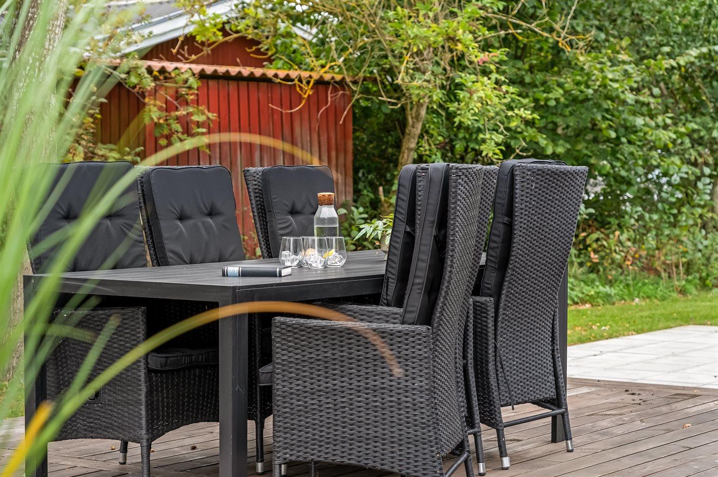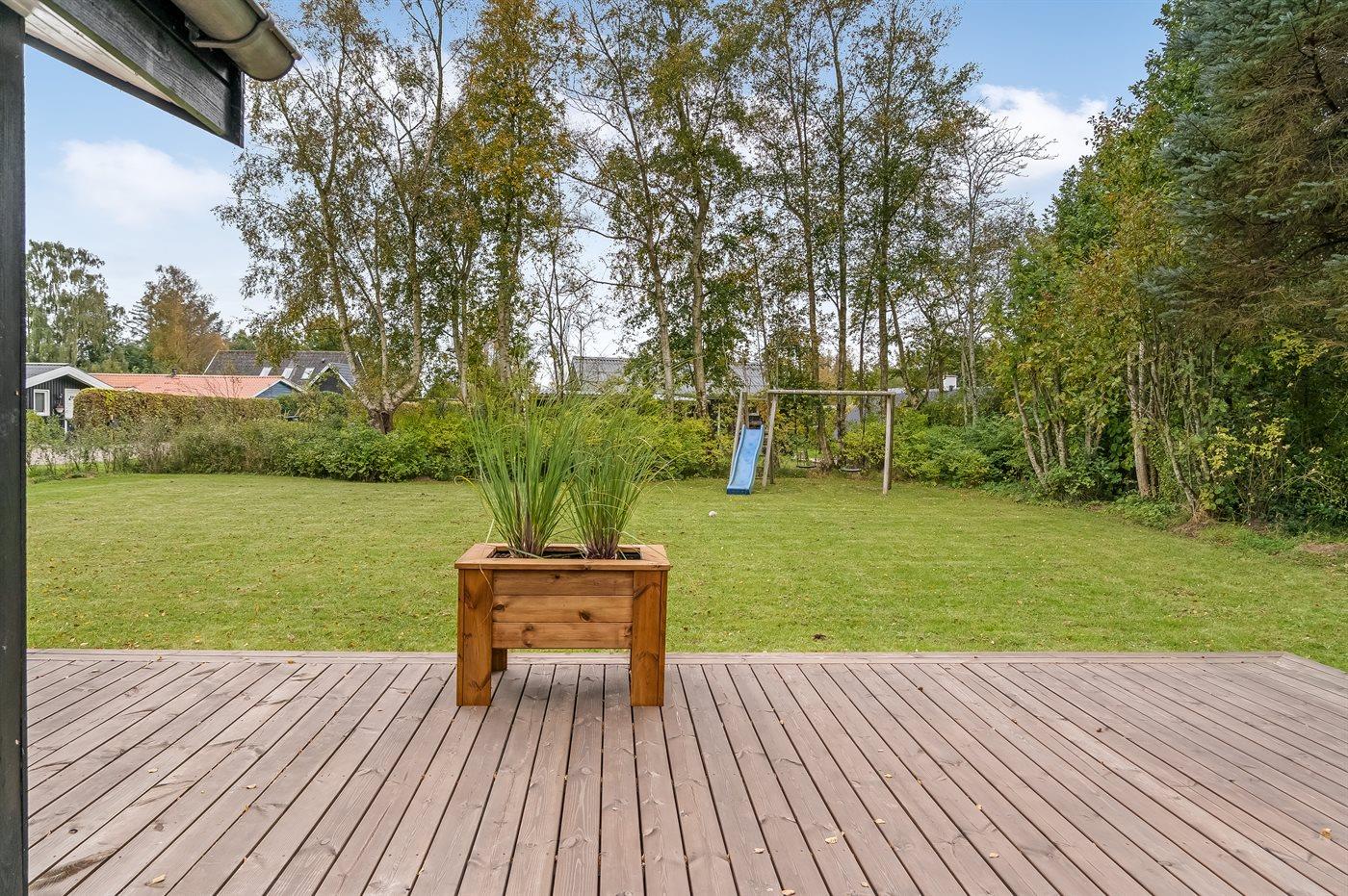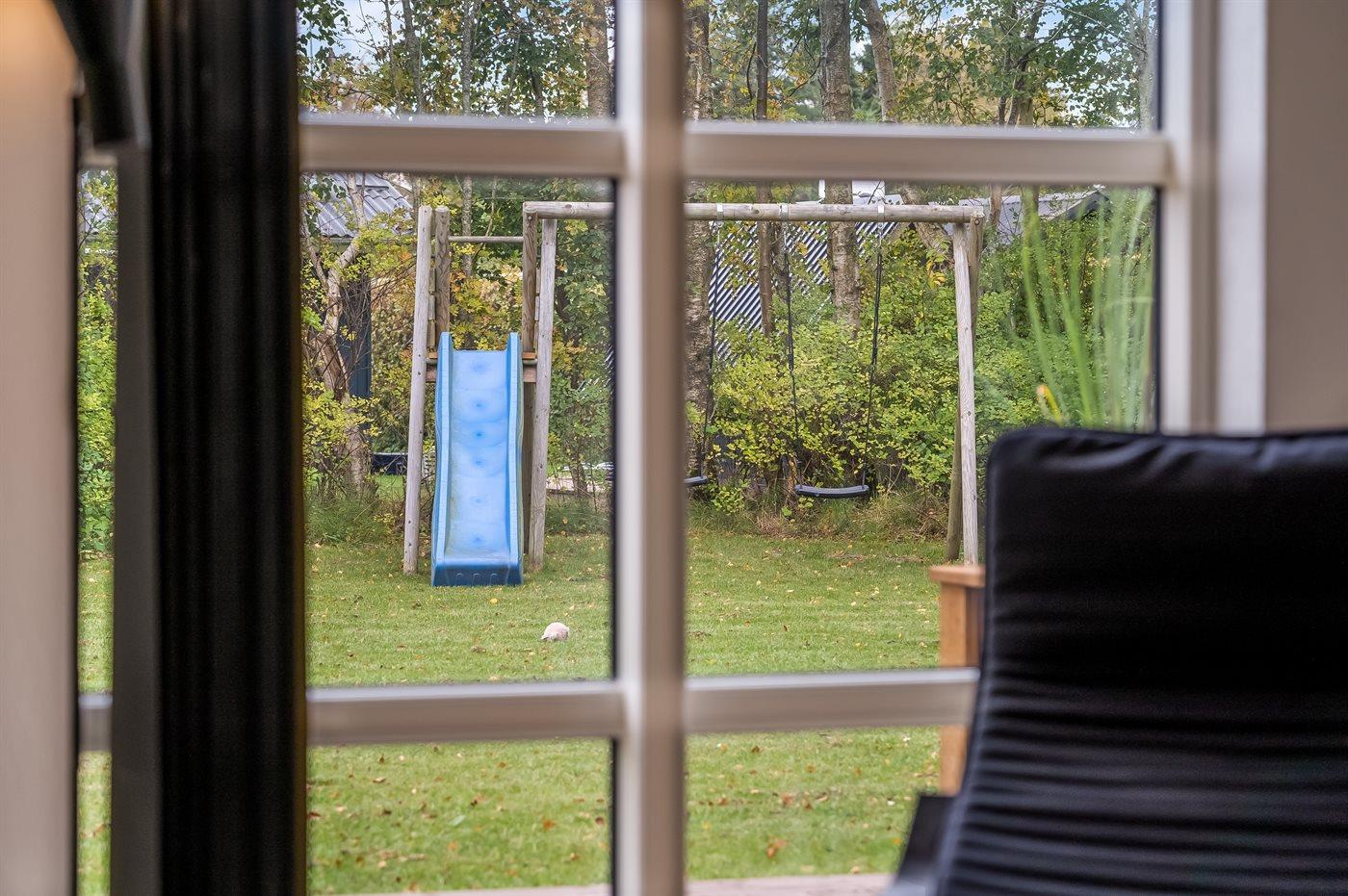 Die Ferienunterkunft liegt auf einem 1110 m² großen Gartengrundstück. Die Entfernung zum Meer beträgt 870 m. Die Entfernung zum Fjord beträgt 5800 m. Die nächste Einkaufsmöglichkeit liegt 2100 m entfernt. In einem Abstand von 5280 m gibt es einen Golfplatz. Es steht ein offenes Terrassenareal zur Verfügung. Außerdem gibt es überdachte Terrasse. Schaukel. Sandkasten. Rutsche. Es stehen zwei Grill zur Verfügung (einer für Gas und einer für Kohle). Parkplatz auf dem Grundstück.