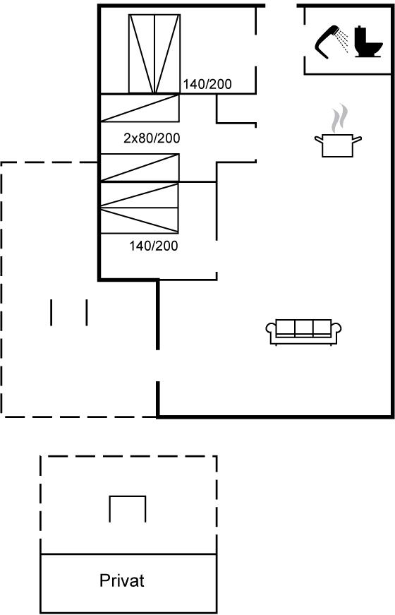 Die Schlafplätze verteilen sich auf 3 Schlafräume. 4 Schlafplätze in Doppelbetten. 2 Schlafplätze in Einzelbetten.