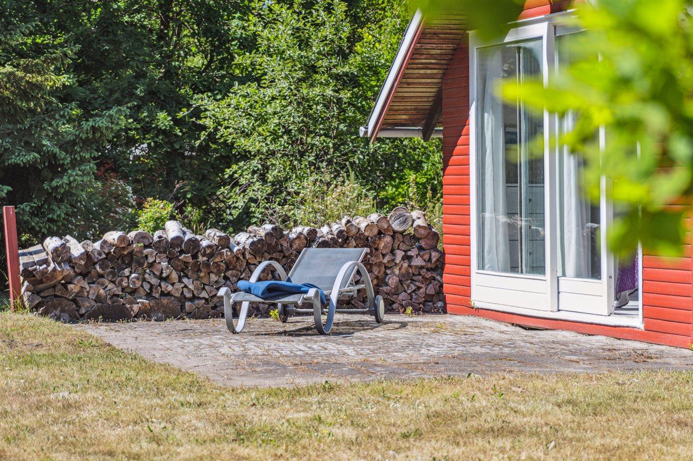 Gemütliches Ferienhaus aus Holz mit schöner Terrasse und Gartenmöbeln, 2 km von Hals und 1300 m vom kinderfreundlichen Bisnap Strand entfernt.