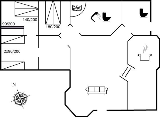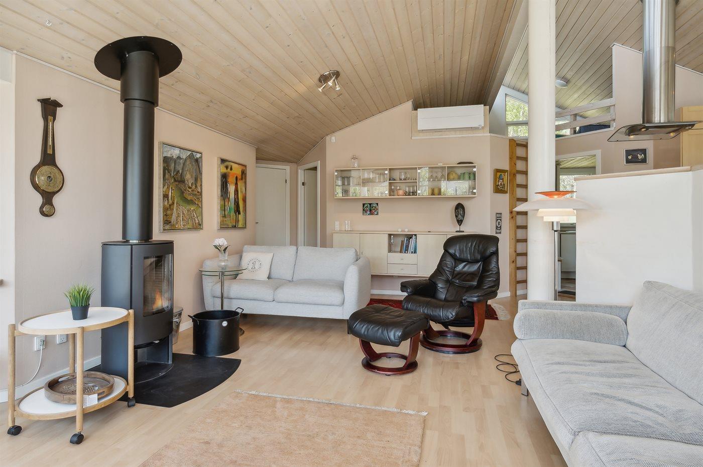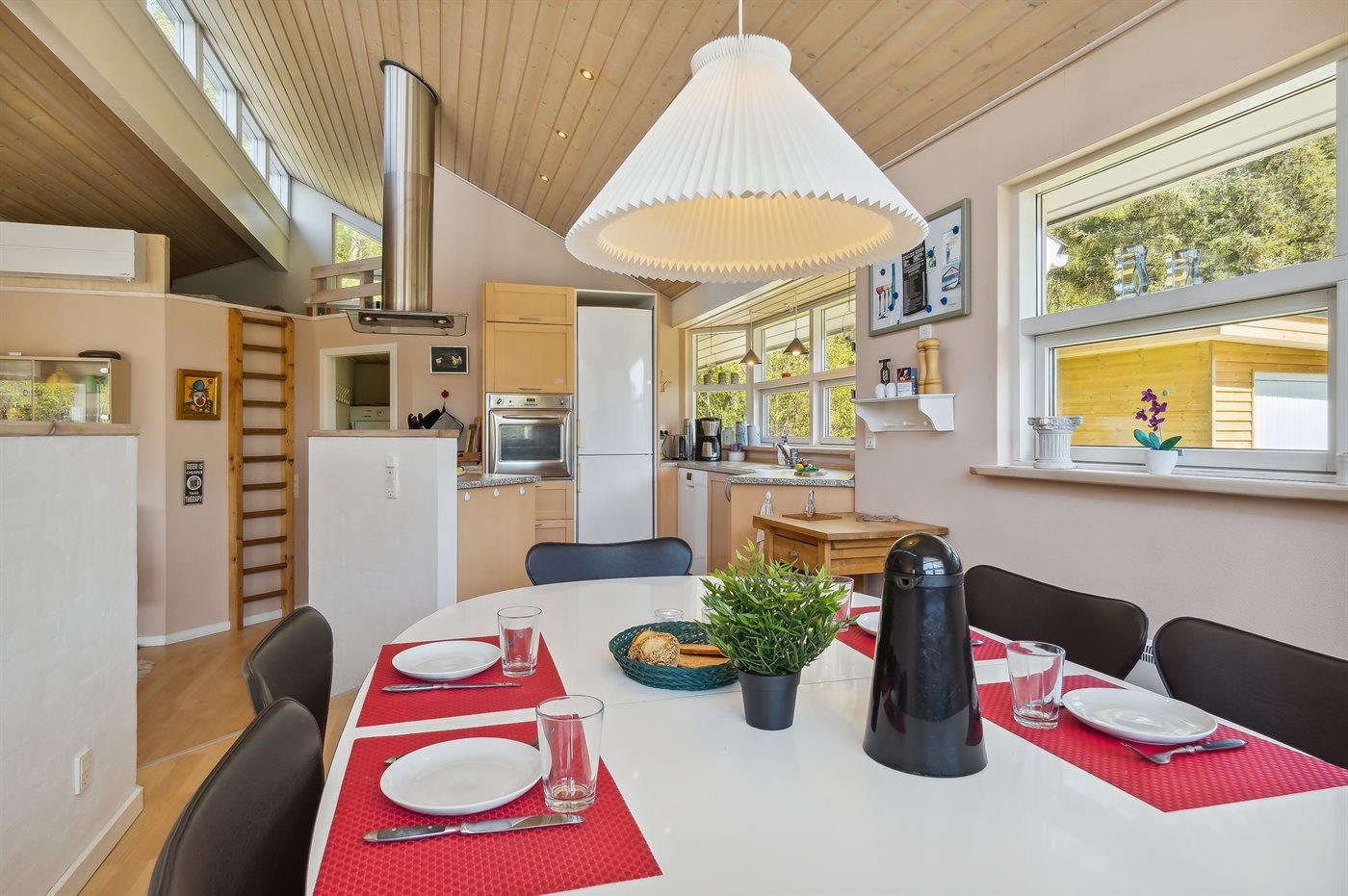 Das Ferienhaus eignet sich für 6 Personen. 10 der Schlafplätze eignen sich jedoch nur für größere Kinder (4-11 Jahre). Die Ferienunterkunft hat eine Wohnfläche von 106 m² und wurde 2001 gebaut. 2003 wurde die Ferienunterkunft teilweise renoviert. Es ist erlaubt 2 Haustiere mitzubringen. Die Ferienunterkunft ist mit Waschmaschine ausgestattet. Wäschetrockner. Tiefkühlmöglichkeit mit 10 Liter Nutzinhalt. Es gibt außerdem einen Kaminofen. Für die jüngsten Feriengäste ist 1 Kinderhochstuhl vorhanden.
