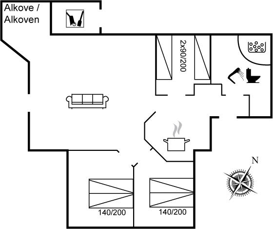 Die Schlafplätze verteilen sich auf 3 Schlafräume. 4 Schlafplätze in Doppelbetten. 2 Schlafplätze in Einzelbetten.2 Schlafplätze im Alkoven. Ferner steht ein Kinderbett zur Verfügung.