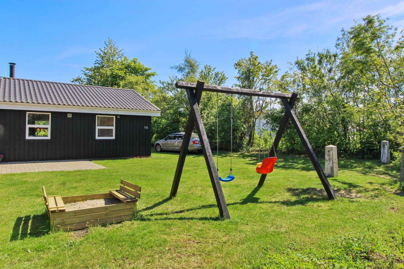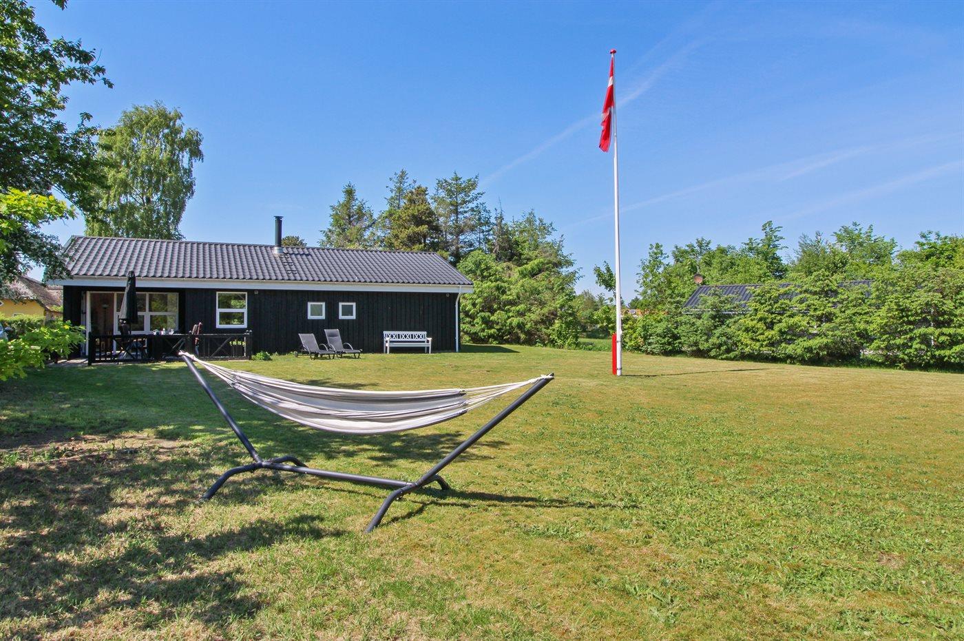 Gemütliches Holzferienhaus in Hals, Dänemark, nahe Sandstrand mit großem Garten und moderner Ausstattung.