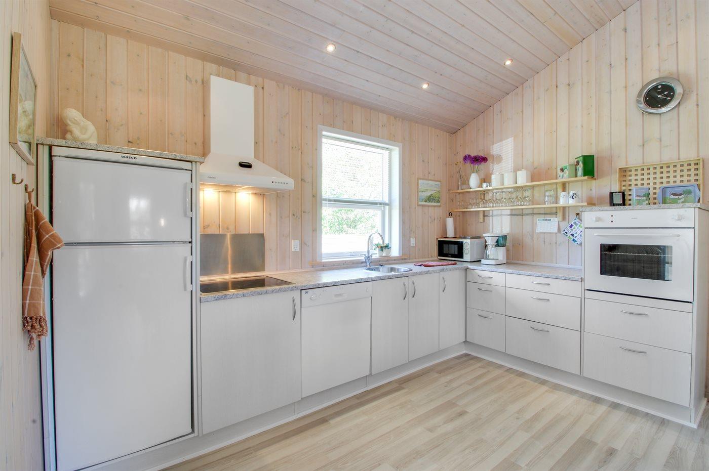 Die Küche ist mit Kühlschrank ausgestattet. Außerdem gibt es 4 Keramik-Kochfelder, Umluftofen, Mikrowelle sowie Geschirrspüler.