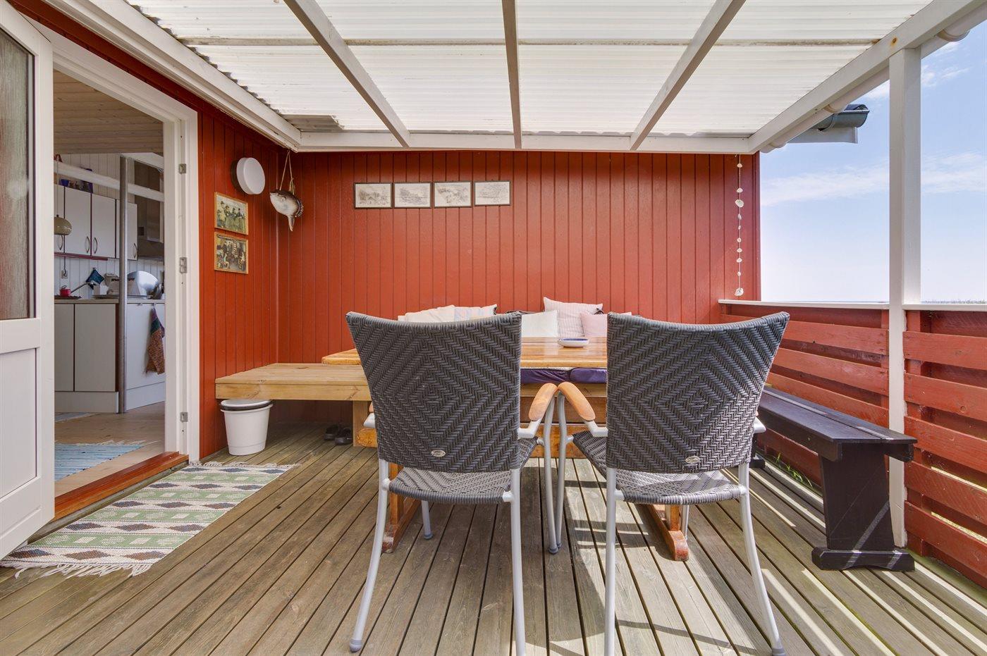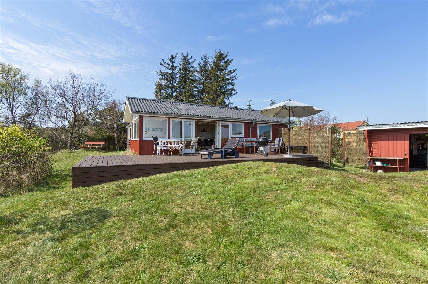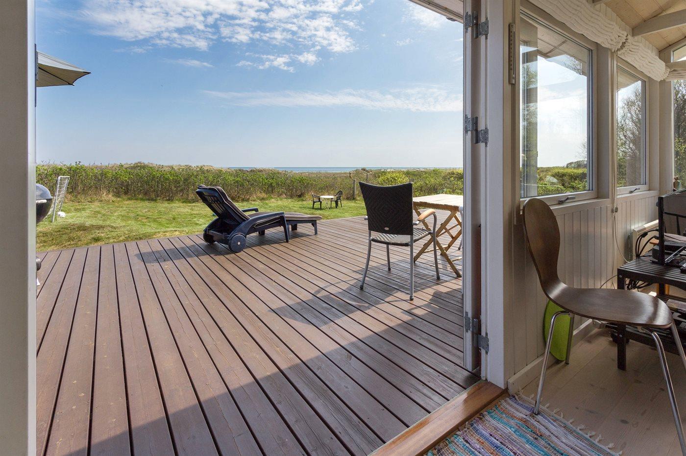 Gemütliches Ferienhaus, mit Traumlage und direkt Meerblick über Kattegat. Hier haben Sie ein wunderschönen Sonnenaufgang. Schöne Terrasse - auch teilweise überdacht, mit Gartenmöbeln, Sonnenliegen, Sandkasten und Schaukel für die Kinder.