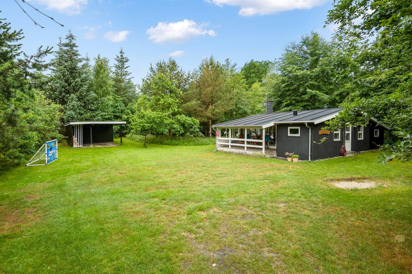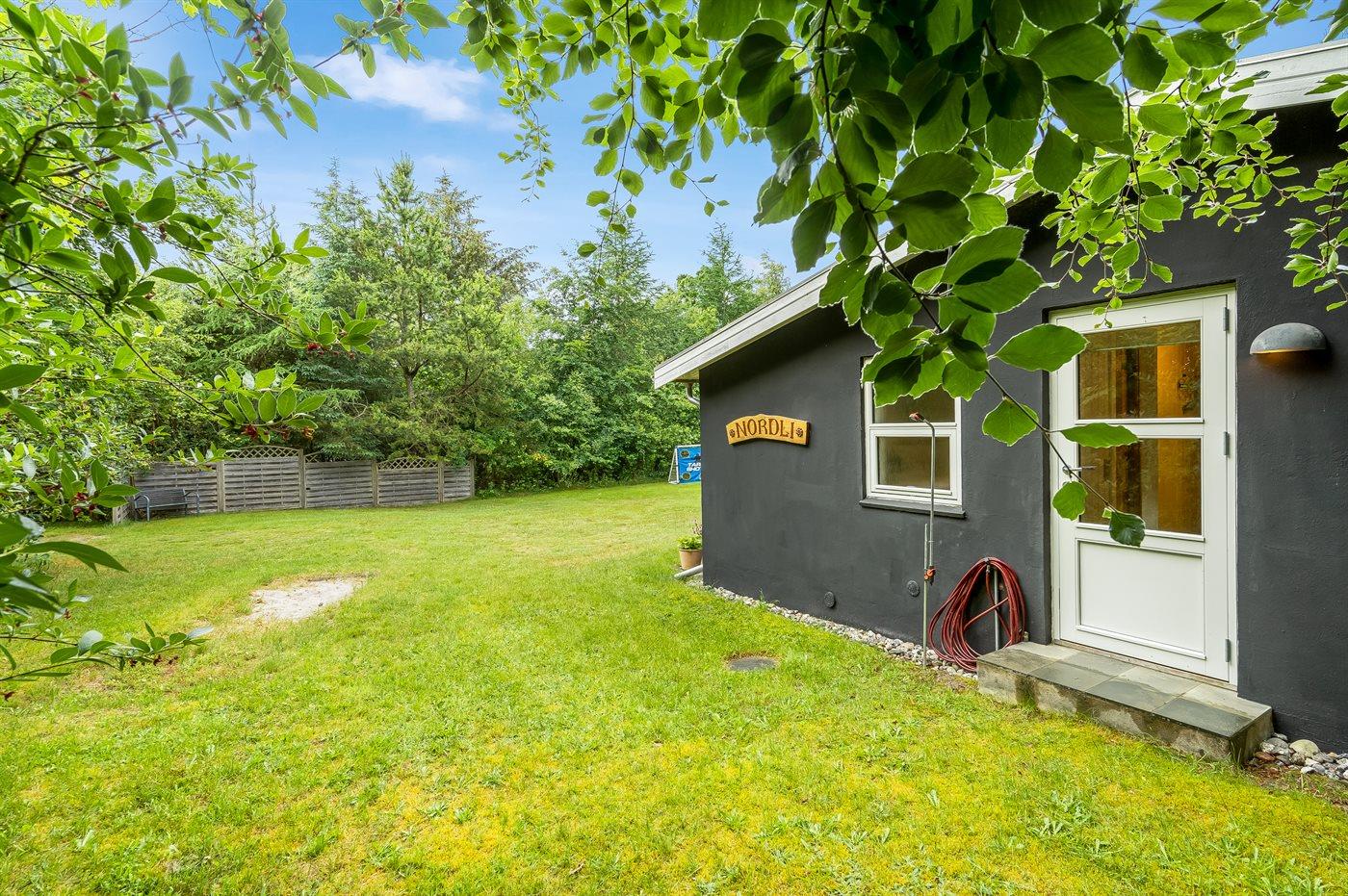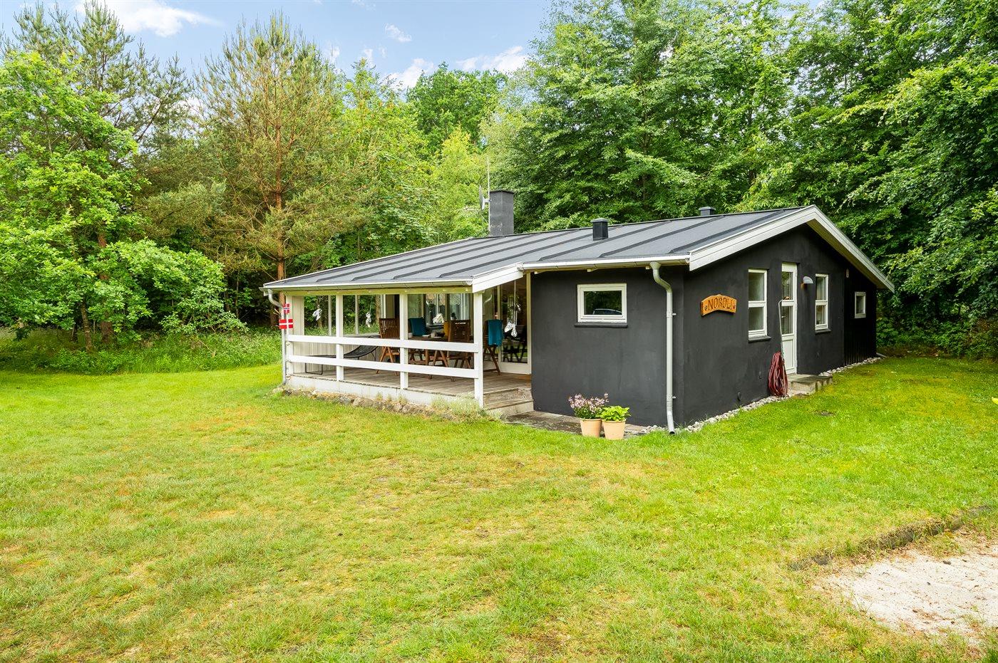 Gemütliches Ferienhaus in Holz, auf einem grossen Naturgrundstück, ca. 400 m vom Sandbadestrand gelegen. Überdachte Terrasse mit Gartenmöbeln, Schaukel und Sandkasten für die Kinder.