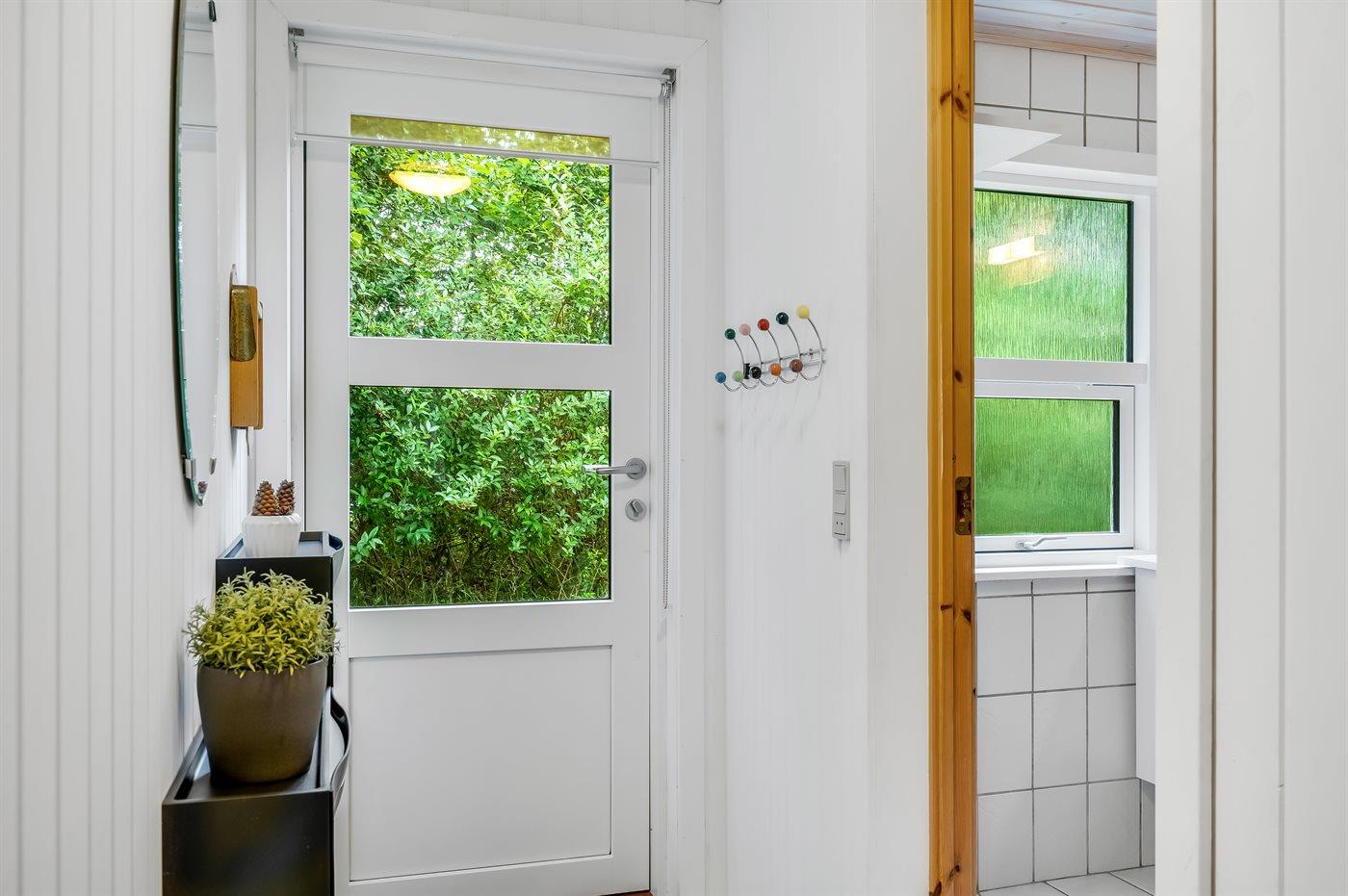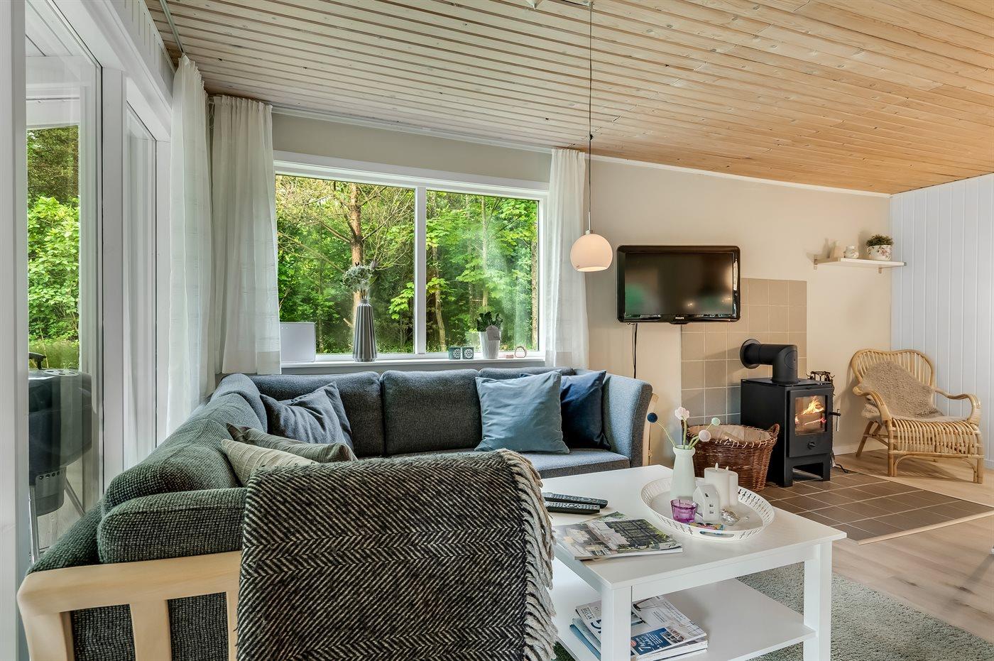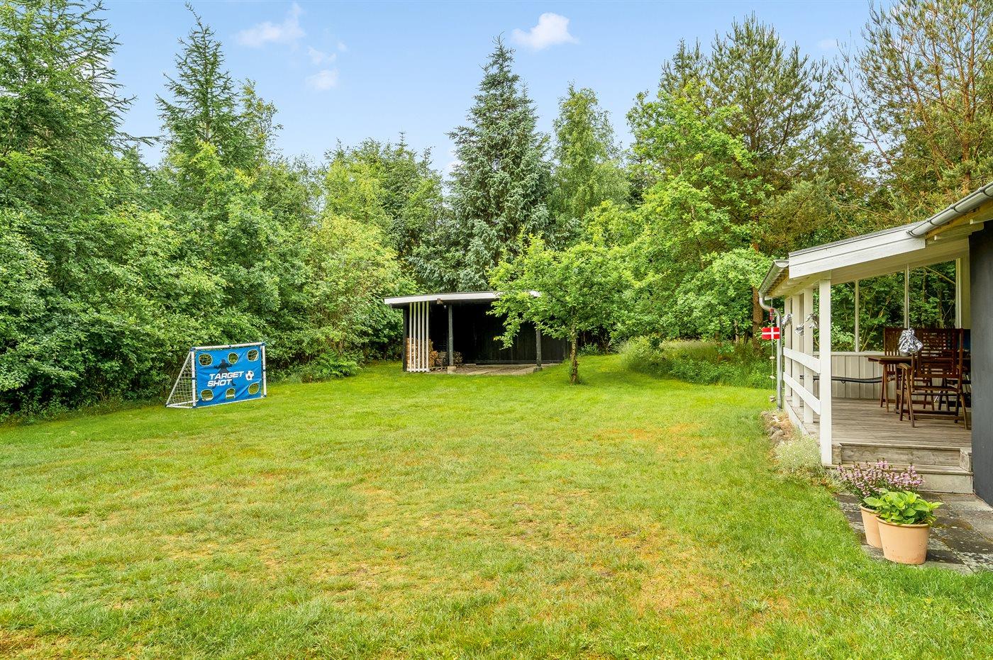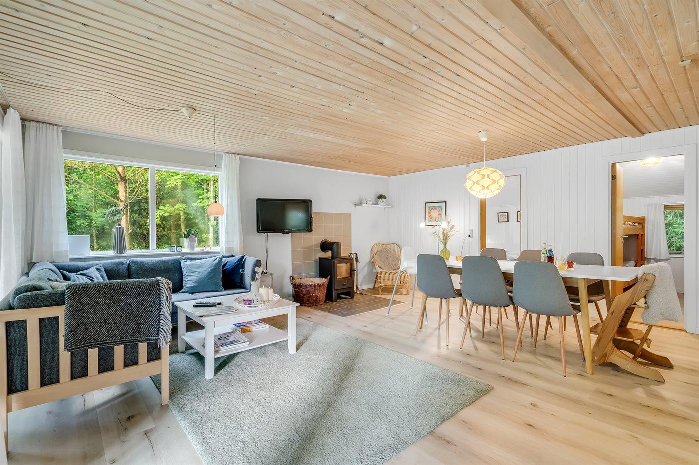 Gemütliches Ferienhaus in Holz, auf einem grossen Naturgrundstück, ca. 400 m vom Sandbadestrand gelegen. Überdachte Terrasse mit Gartenmöbeln, Schaukel und Sandkasten für die Kinder.