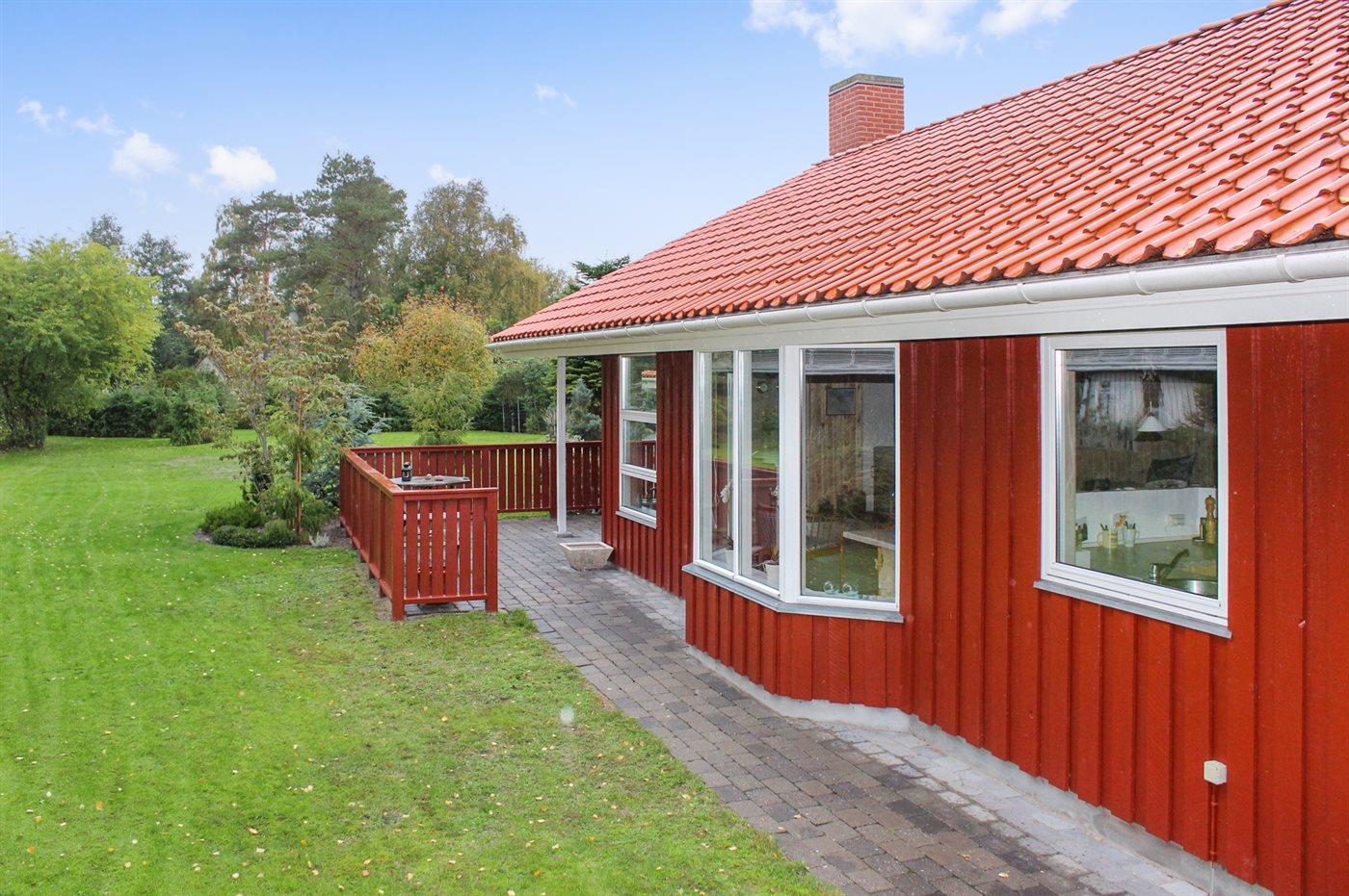 Sehr schönes Ferienhaus, dicht am Sandbadestrand. Die Lage ist sehr ruhig und das Ferienhaus liegt naturschön. Teilweise überdachte Terrasse mit Gartenmöbeln, Sonnenliege und Sandkasten ist auch vorhanden.