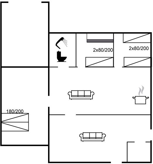 Kein Fernseher. 1 Smart-TV. Radio. 1-3 dänische Fernsehsender. Mindestens 4 deutsche Fernsehsender. Es steht kabellose Internetverbindung zur Verfügung.