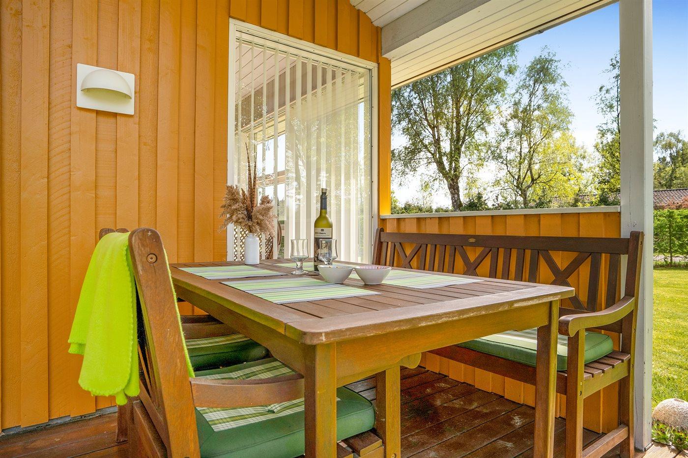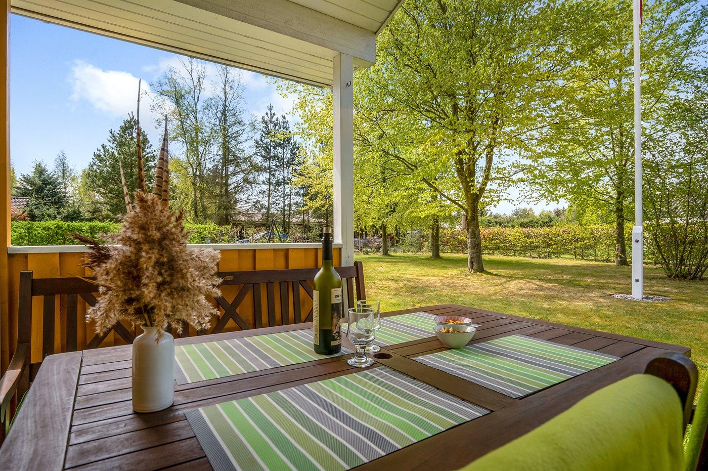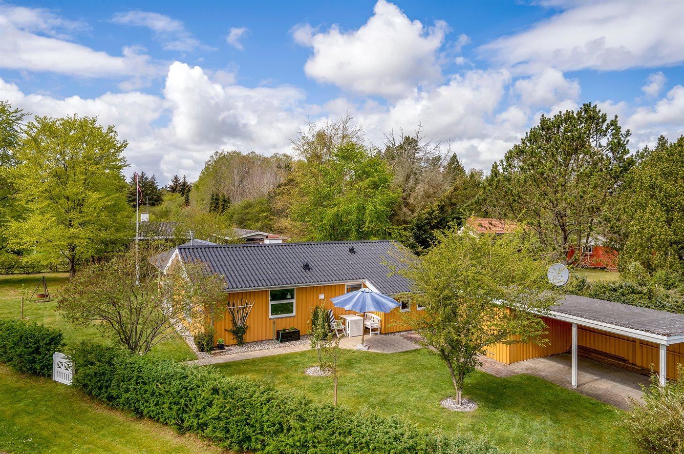 Gemütliches und gepflegtes Ferienhaus, zwischen Hou und Hals. Das Grundstück ist eingezäunt und mit Rasen. Teilweise überdachte Terrasse mit Gartenmöbeln, Sonnenliege, Grill und für die Kinder gibt es ein Sandkasten.