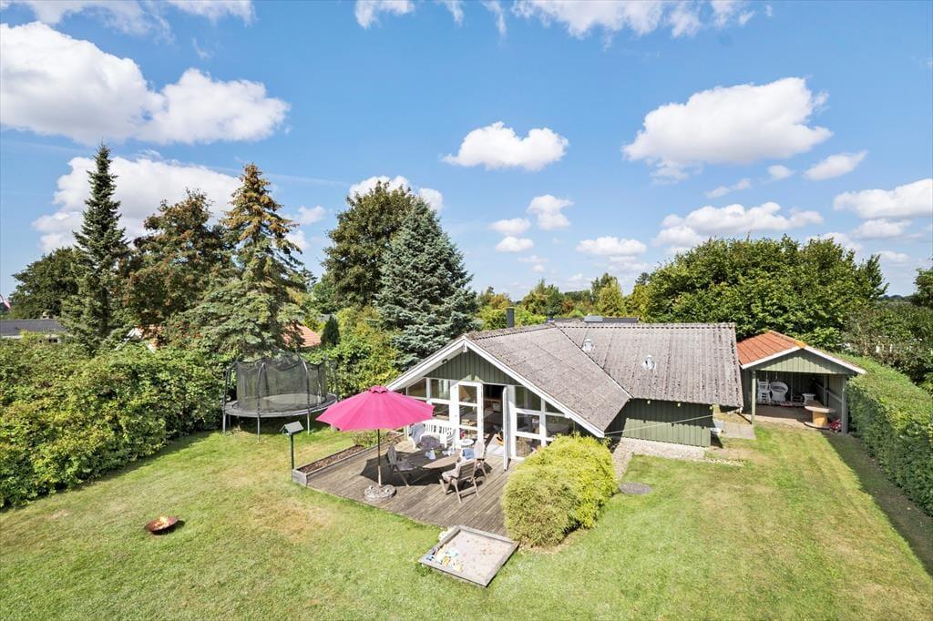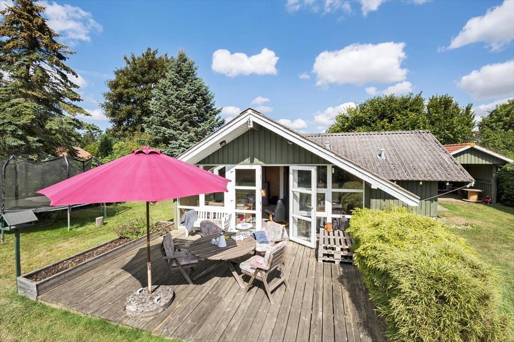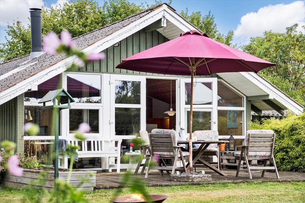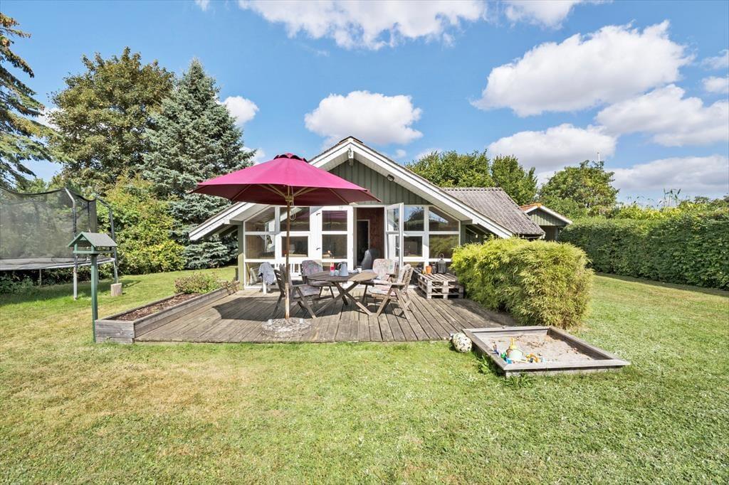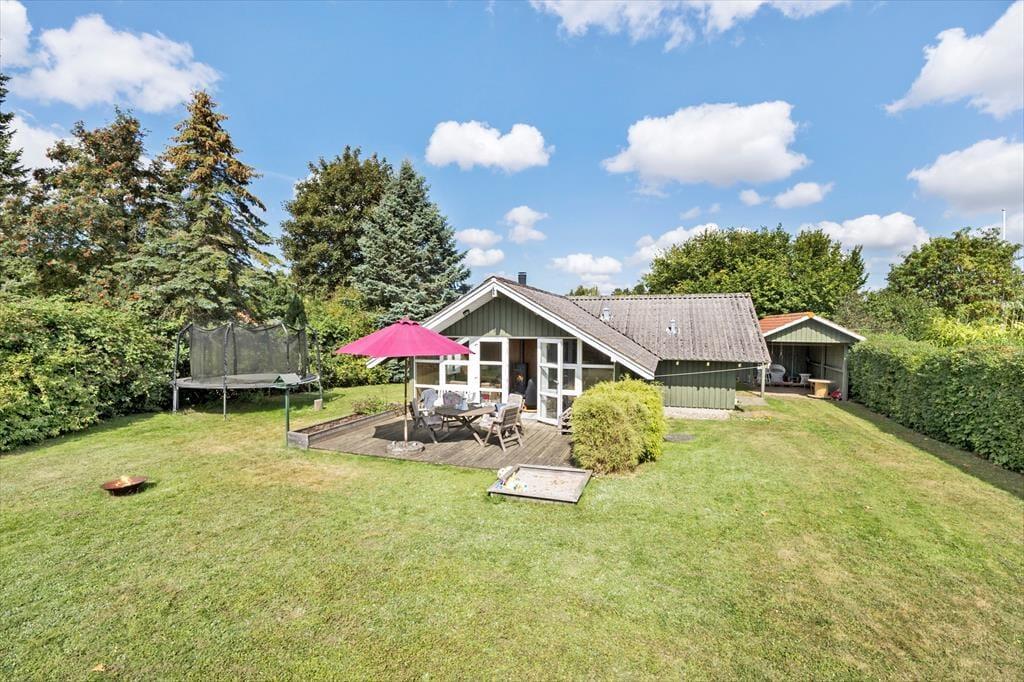 Genieße das Leben im Freien: Das Haus steht auf einem 700 m² großen, abgeschirmten Grundstück. Eine teils überdachte Terrasse lädt zum Verweilen ein, und im Garten gibt es mehrere gemütliche Sitzecken. In der Nähe des Hauses führt ein Weg direkt zum Wasser. Zur Ausstattung gehören Gartenmöbel, ein Sonnenschirm, ein Trampolin, eine Feuerstelle und ein Sandkasten.
