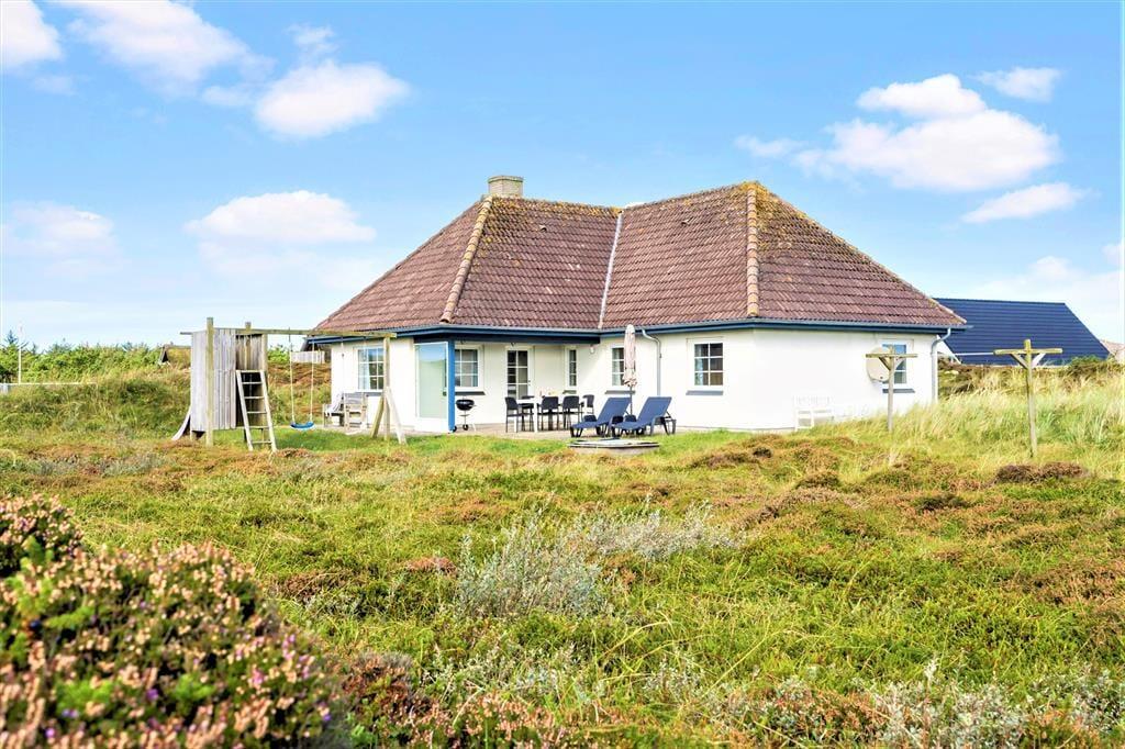 Im Grønsletten wohnen Sie in einem kleinen, geschlossenen Ferienhausgebiet, nur 600 Meter vom Strand und der Nordsee entfernt. Das Haus liegt am Ende der Straße - für Sie sind es nur wenige Schritte von Ihrem Grundstück aus in die freie Natur, die südlich der Bebauung beginnt. Für Ihre Einkäufe brauchen Sie nur 3 km bis zum ganzjährig geöffneten Kaufmann zurücklegen - ansonsten können Sie nach Hvide Sande fahren, um dort in Spezialgeschäften zu shoppen, frisch gefangenen oder geräucherten Fisch zu kaufen oder ins Restaurant zu gehen. Ihren Urlaub auf Holmsland Klit zwischen dem Ringkøbing Fjord und der Nordsee können Sie mit zahlreichen Aktivitäten füllen, von denen Radtouren, Wandern, Angeln und Wassersport nur einige sind.
