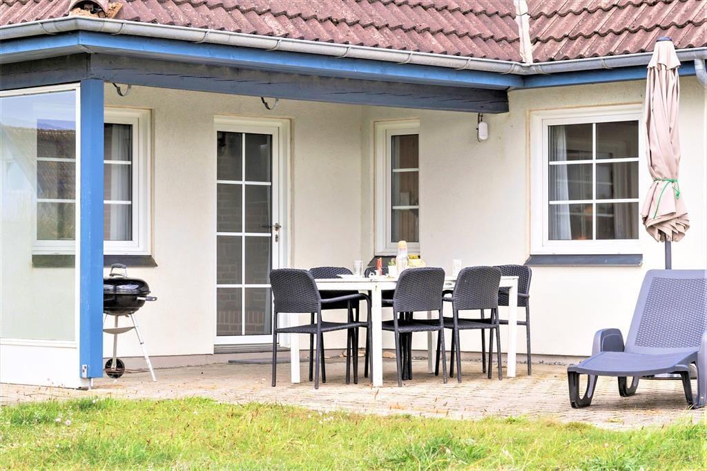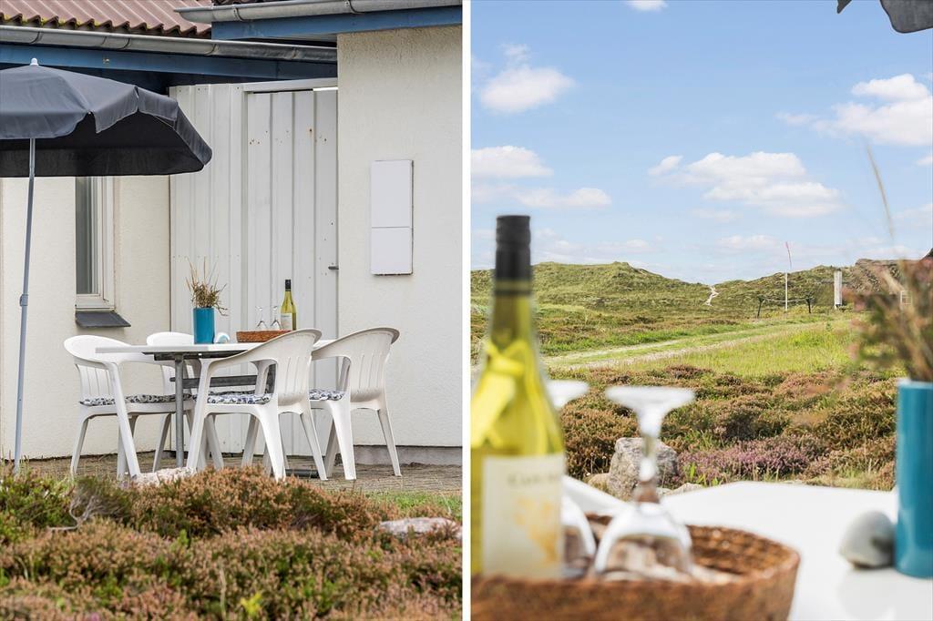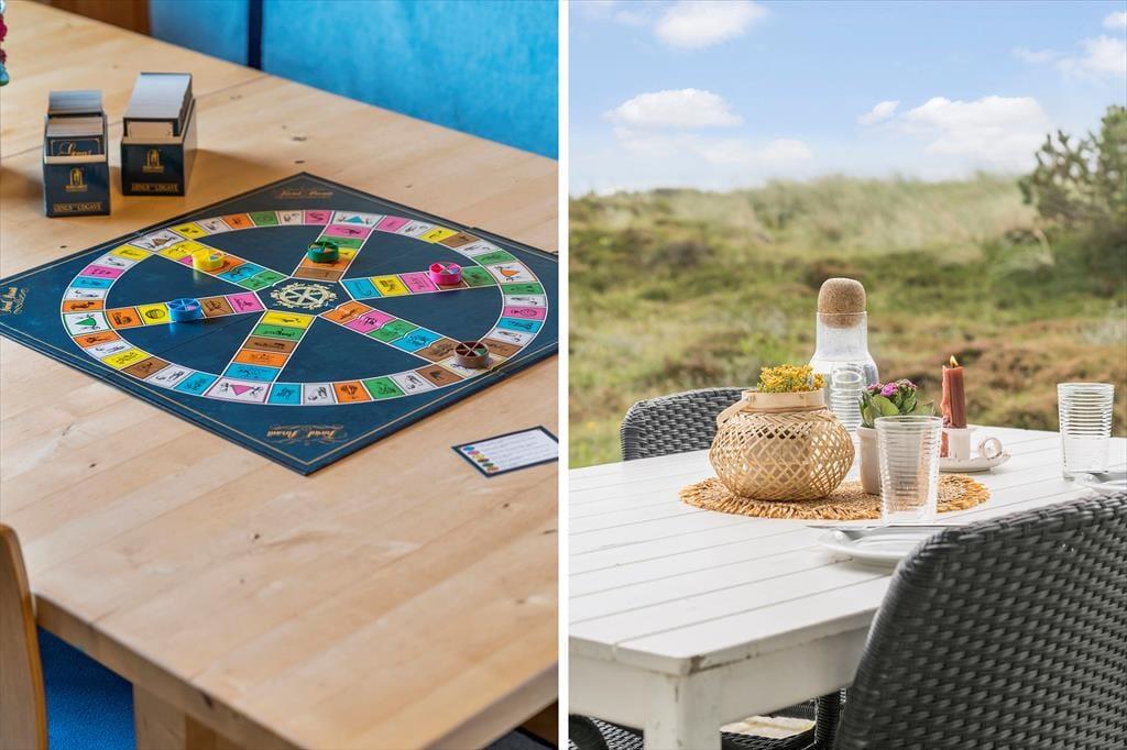Von der Terrasse des Ferienhauses aus können Sie die Aussicht auf Ihr eigenes großes Grundstück und auf die schöne Dünenlandschaft genießen. Es gibt mehrere Sitzmöglichkeiten und sonnenverwöhnte Ecken, zwischen denen Sie wählen können - aber vielleicht wird vor allem die große sonnige und teilweise überdachte Südterrasse Ihr erklärter Lieblingsort. Von hier aus haben Sie einen guten Blick auf das Spielgerüst und die Sandkiste, wo sich die Kinder tummeln können, während die Erwachsenen noch einen Moment in den Gartenstühlen sitzen bleiben.