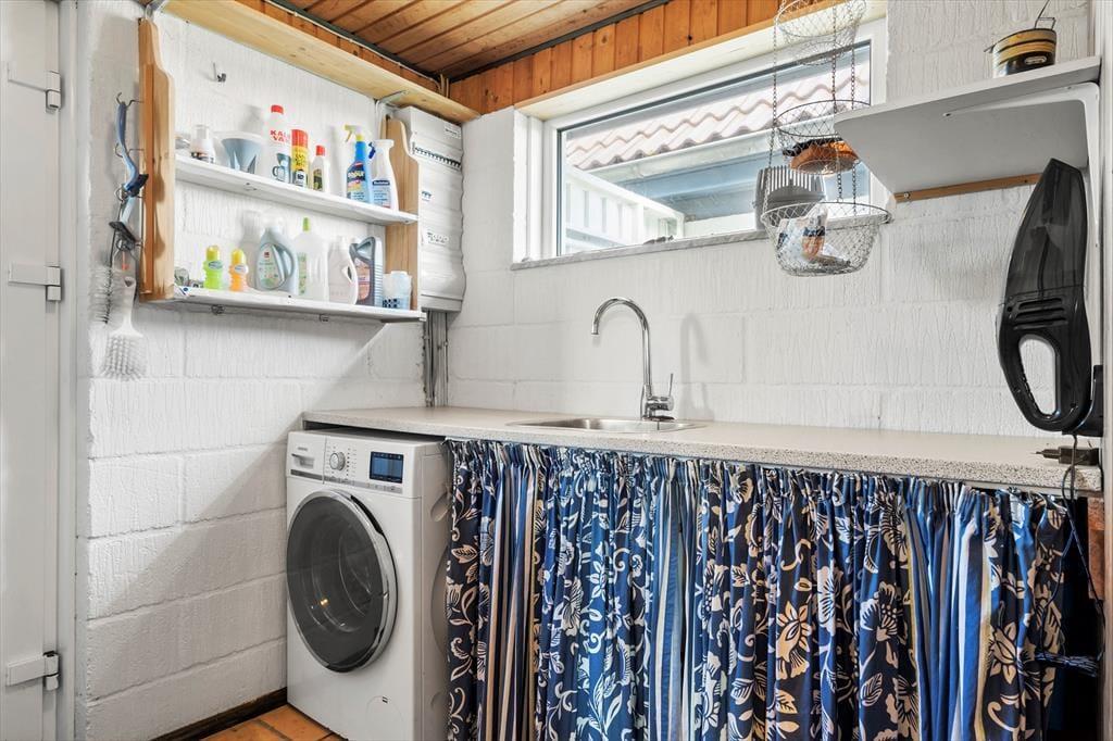 Das 92 m² große Ferienhaus bietet in drei Schlafzimmern gute Schlafmöglichkeiten für alle Urlaubsgäste. Das Badezimmer mit Dusche und der Hauswirtschaftsraum verfügen zusätzlich über Ablageflächen für Jacken und Schuhe.