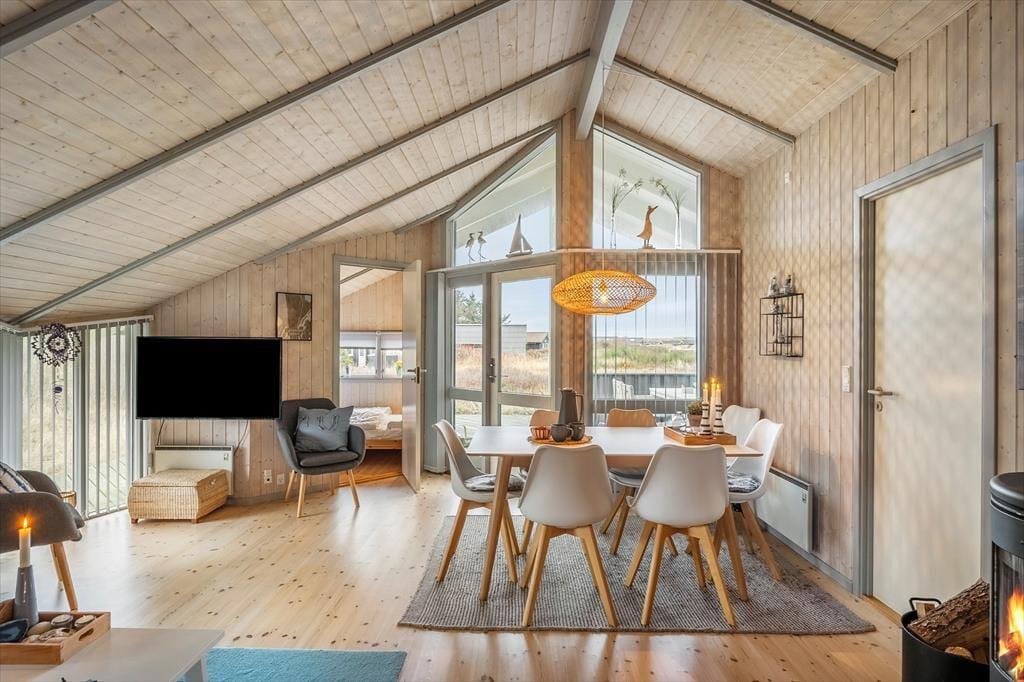 Ferienhaus in Bjerregård, Westjütland, mit Platz für 6 Erwachsene und 2 Haustier(e). Es erwartet Sie eine gemütliche Einrichtung mit u.a. Kamin, darüber hinaus sind Waschmaschine und Spülmaschine in dieser Unterkunft vorhanden.