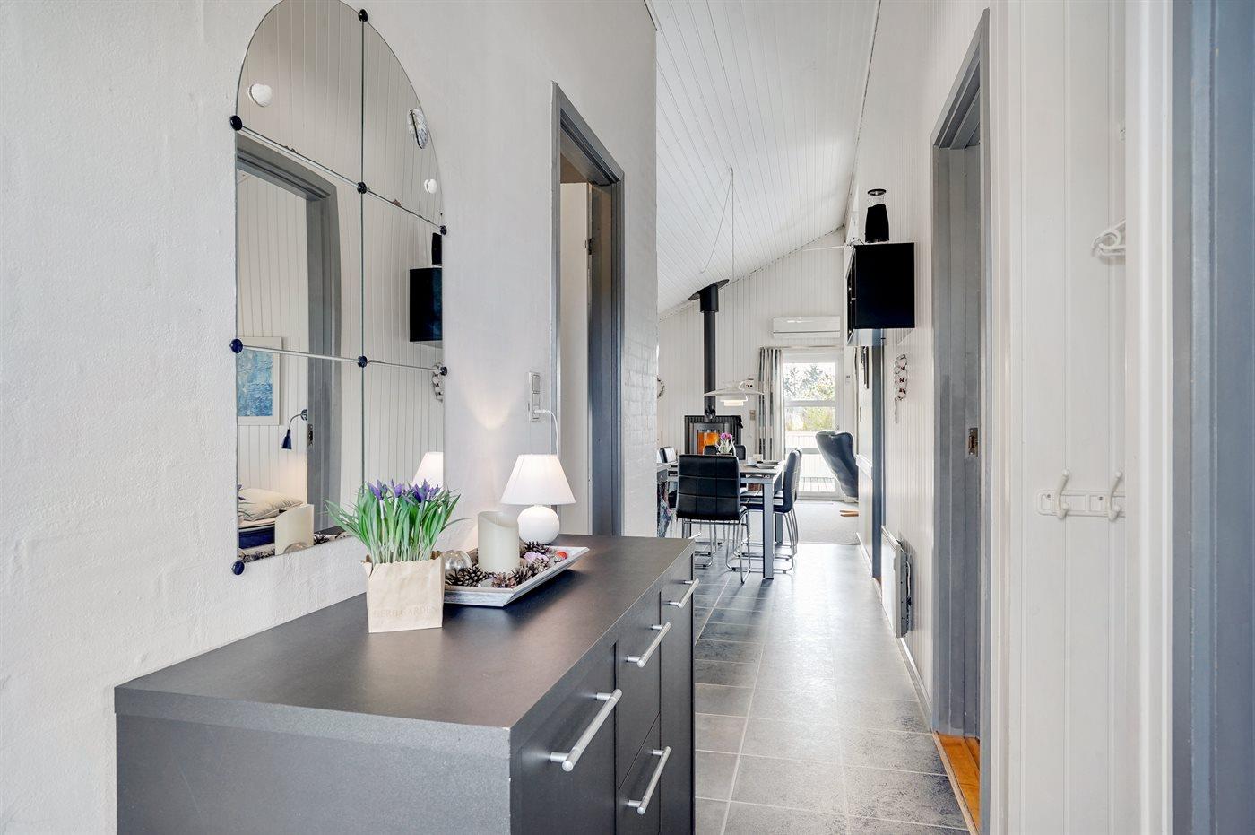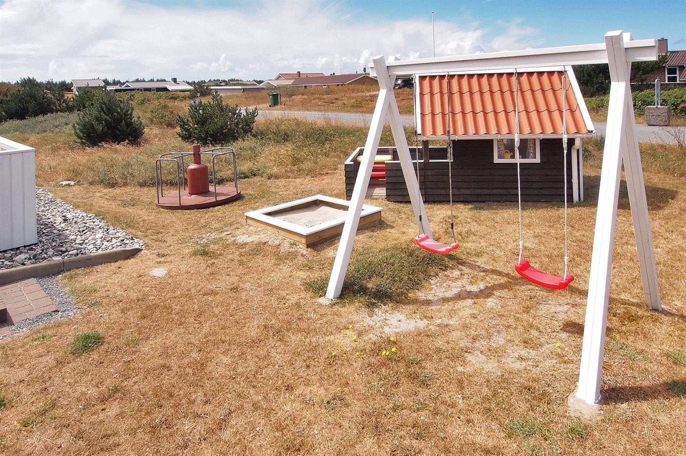 Die Ferienunterkunft liegt auf einem 1200 m² großen Naturgrundstück. Die Entfernung zum Meer beträgt 800 m. Die Entfernung zum Fjord beträgt 800 m. Die nächste Einkaufsmöglichkeit liegt 300 m entfernt. Es steht ein 30 m² Terrassenareal zur Verfügung. Außerdem gibt es 10 m² überdachte Terrasse. Davon insgesamt 30 m² geschlossene Terrasse. Geräteraum. Schaukel. Sandkasten. Kinderspielhaus. Parkplatz auf dem Grundstück.