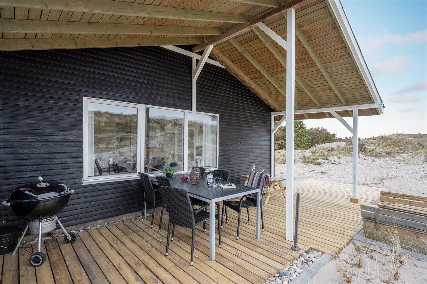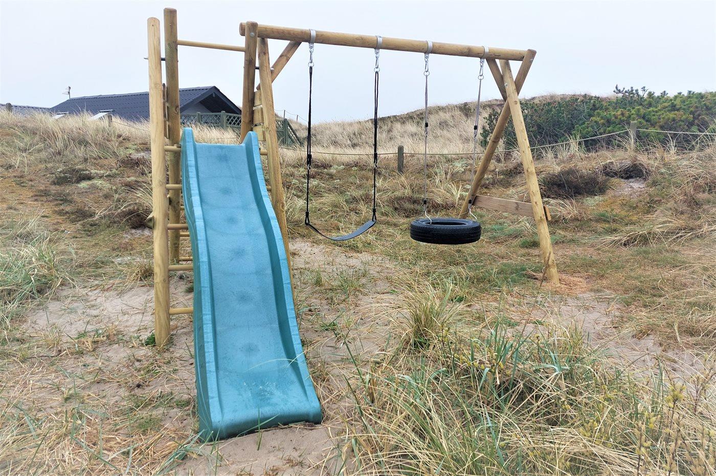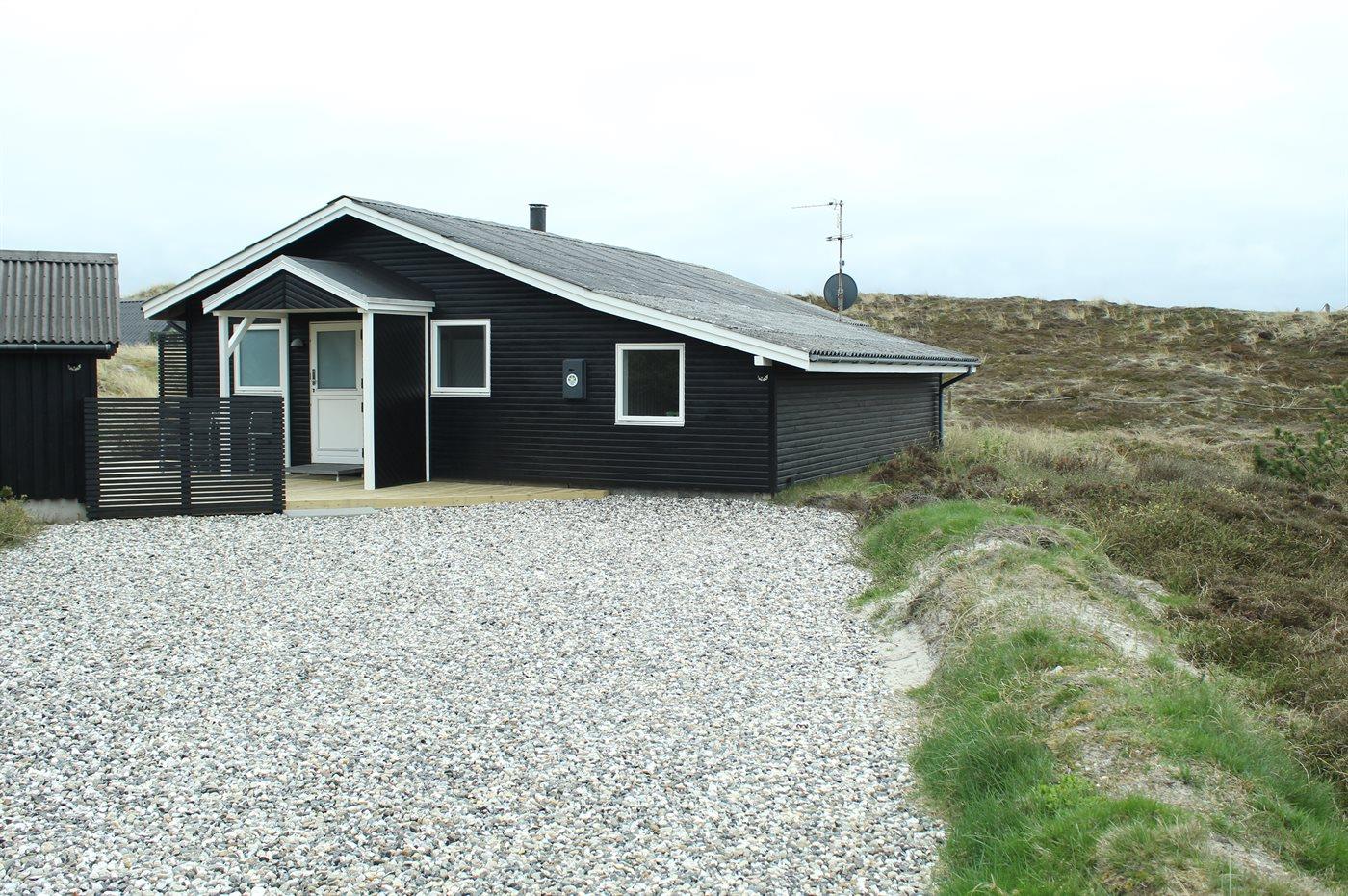 Die Ferienunterkunft liegt auf einem 1500 m² großen Dünengrundstück. Die Entfernung zum Meer beträgt 750 m. Die Entfernung zum Fjord beträgt 1000 m. Die nächste Einkaufsmöglichkeit liegt 650 m entfernt. Es steht ein 20 m² Terrassenareal zur Verfügung. Außerdem gibt es 20 m² überdachte Terrasse. Schaukel. Sandkasten. Außendusche. Es ist ein Ladestecker für Elektroautos installiert. Parkplatz auf dem Grundstück.