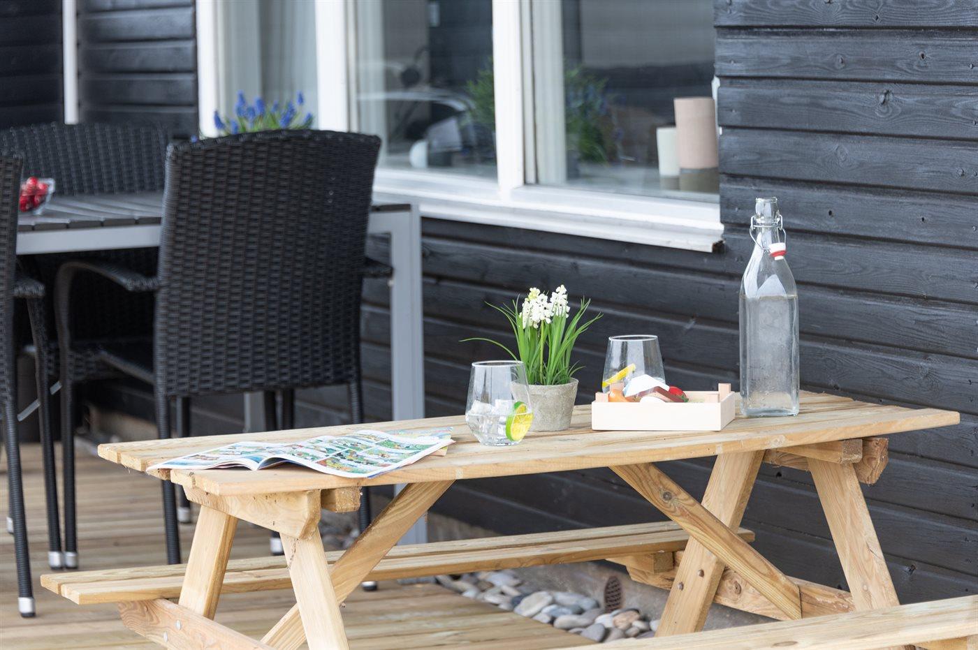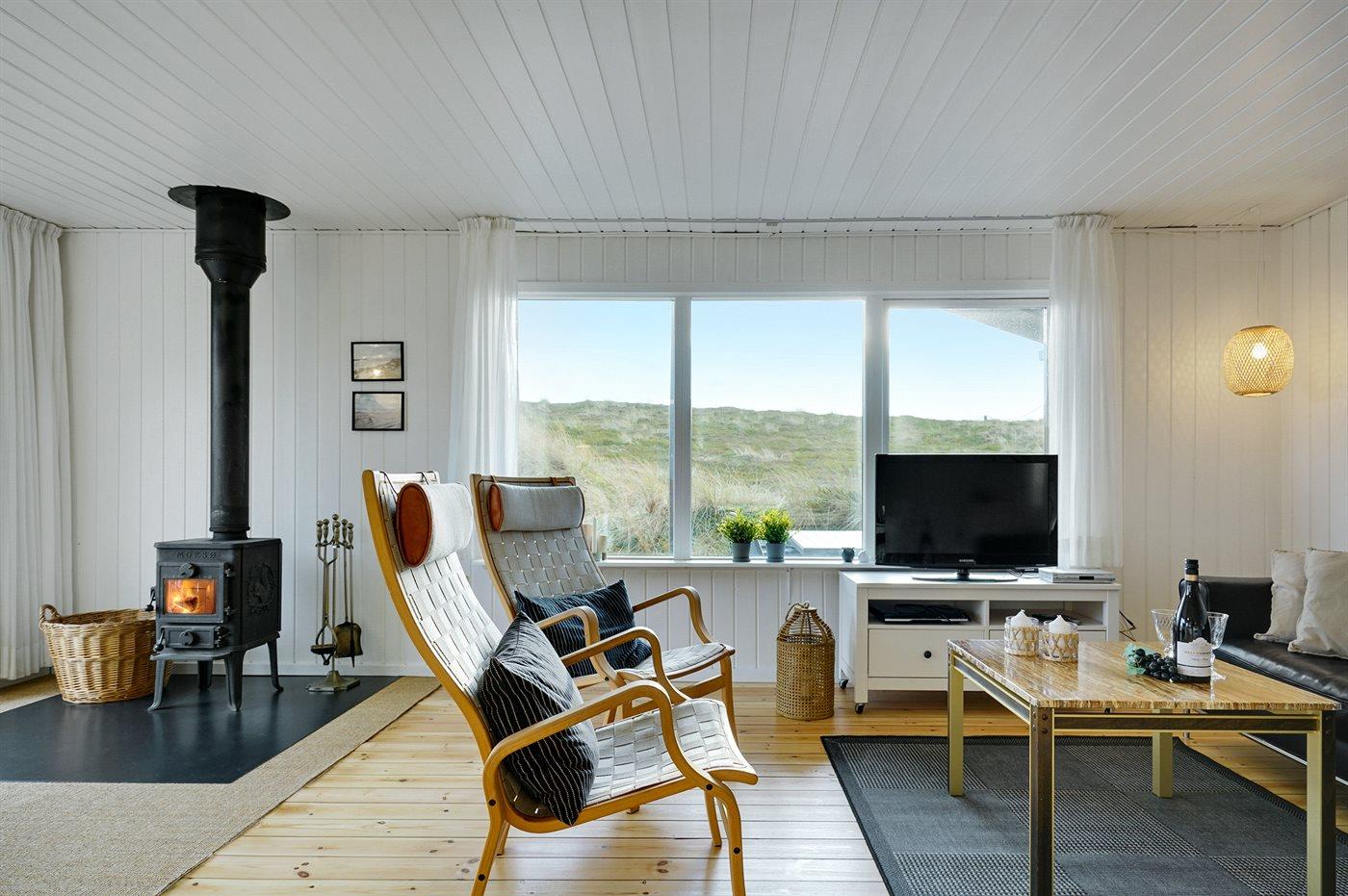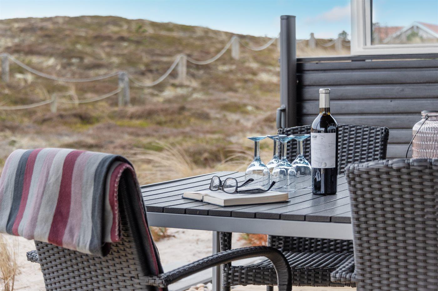 Die Ferienunterkunft liegt auf einem 1500 m² großen Dünengrundstück. Die Entfernung zum Meer beträgt 750 m. Die Entfernung zum Fjord beträgt 1000 m. Die nächste Einkaufsmöglichkeit liegt 650 m entfernt. Es steht ein 20 m² Terrassenareal zur Verfügung. Außerdem gibt es 20 m² überdachte Terrasse. Schaukel. Sandkasten. Außendusche. Es ist ein Ladestecker für Elektroautos installiert. Parkplatz auf dem Grundstück.