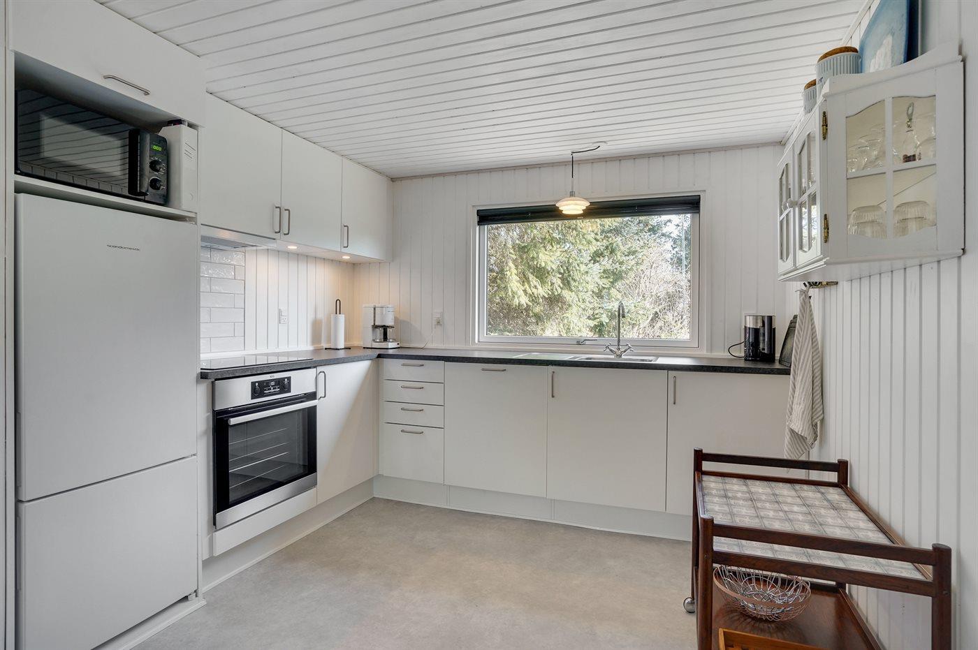 Dieses gemütliche Ferienhaus aus Holz, 1977 gebaut und 2006 modernisiert, liegt auf einem Naturgrundstück. Zum Haus gehören mehrere schöne und zum Teil abgeschirmte Terrassen mit Gartenmöbeln. Auf der überdachten Terrasse können Sie nachmittags und abends die Sonne genießen. Das naturschöne Gebiet an Meer und Fjord lädt zu langen Spaziergängen und Radtouren ein.