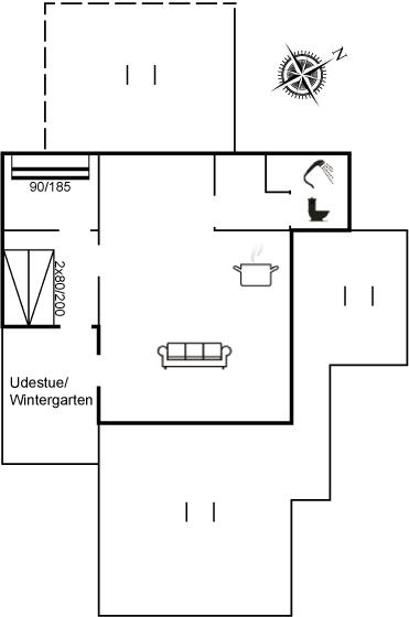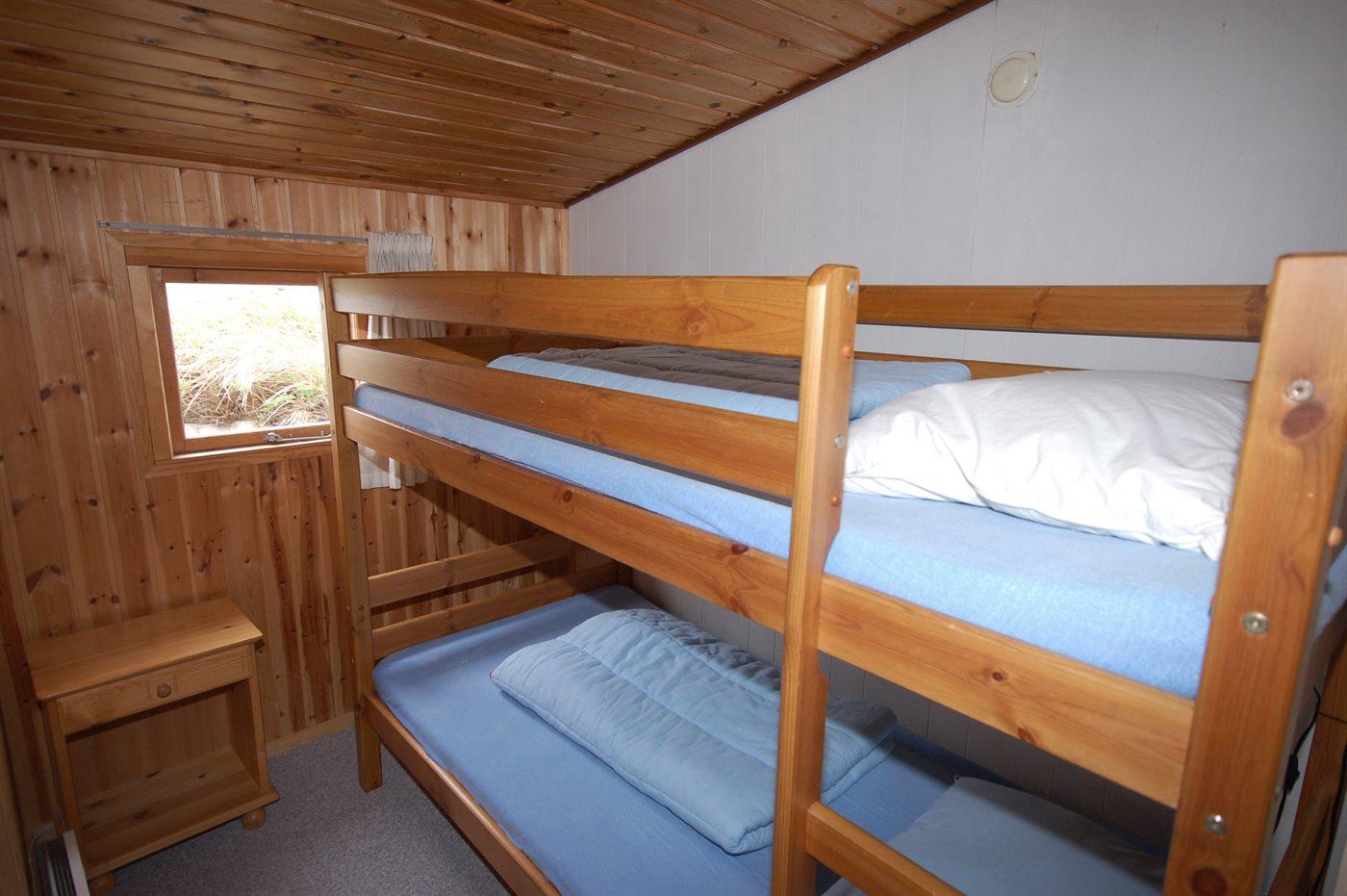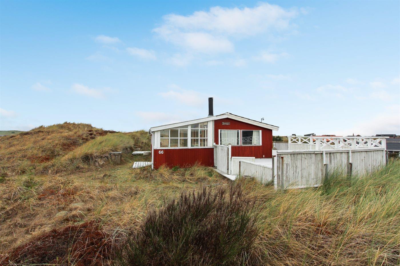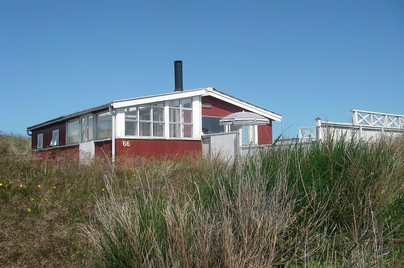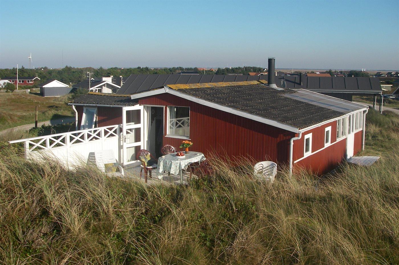 Ferienhaus aus Holz, 1948 gebaut, auf einem schönen, leicht hügeligen Dünengrundstück gelegen. Zum Haus gehören 2 offene Terrassen sowie ein Wintergarten. Helle Holzdecken und -wände. Teppichböden, jedoch PVC-Boden in der Küche. Kleines Badezimmer mit Duschnische. Küche mit u. a. Tiefkühlgerät und Mikrowelle. Wohnzimmer mit Kaminofen, DVD-Spieler, CD-Spieler und TV mit digitalem Satellitenanschluss. Ferner kostenlose Internetverbindung vorhanden (100/100 Mbit - Computer ist mitzubringen). Die Schlafplätze verteilen sich auf 1 Zimmer mit Doppelbett und 1 Zimmer mit Etagenbett.