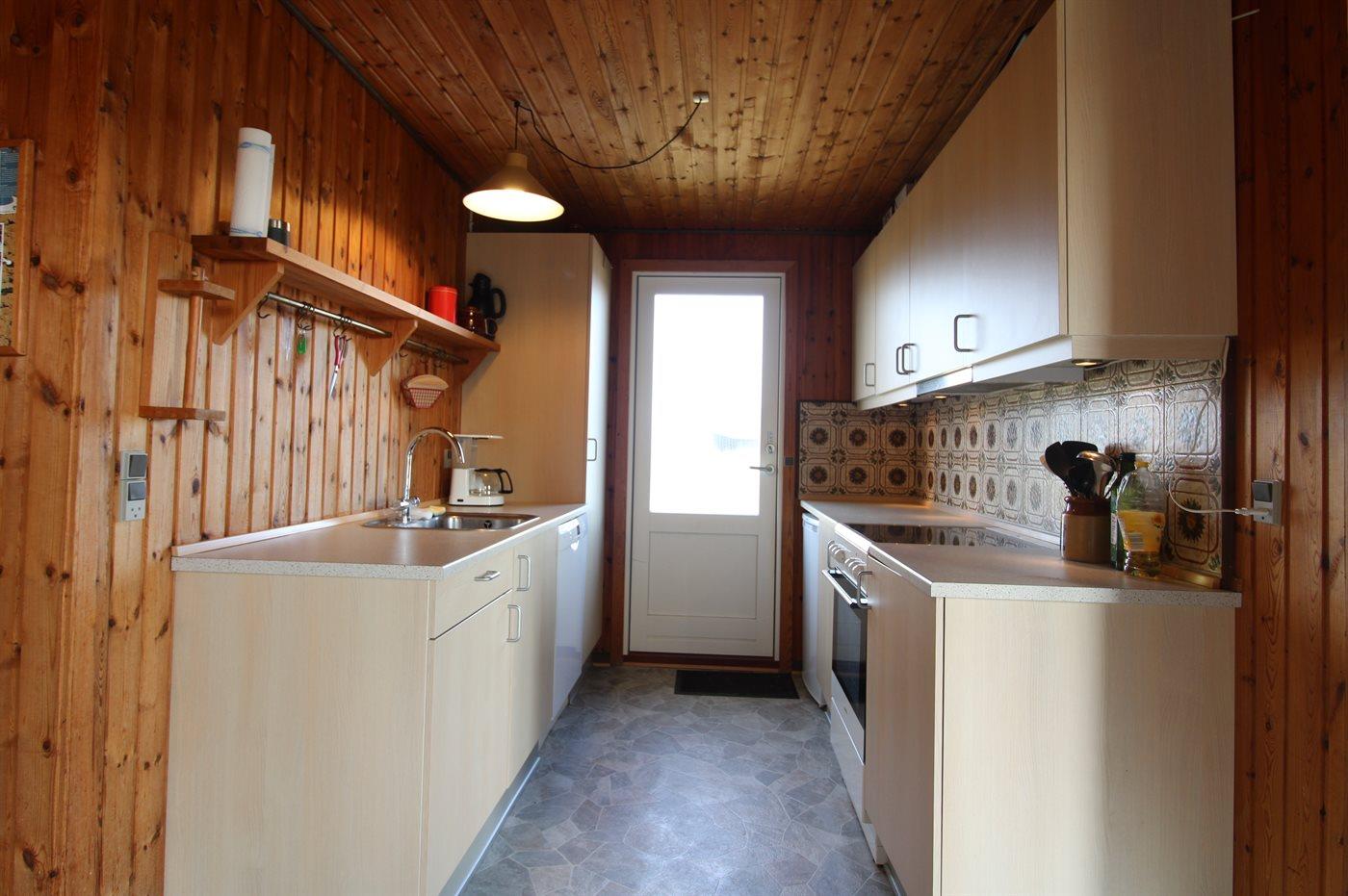 Die Ferienunterkunft liegt auf einem 1204 m² großen Naturgrundstück. Die Entfernung zum Meer beträgt 400 m. Die Entfernung zum Fjord beträgt 700 m. Die nächste Einkaufsmöglichkeit liegt 1500 m entfernt. Es steht ein 21 m² Terrassenareal zur Verfügung. Außerdem gibt es 15 m² überdachte Terrasse. Geräteraum. Parkplatz auf dem Grundstück.