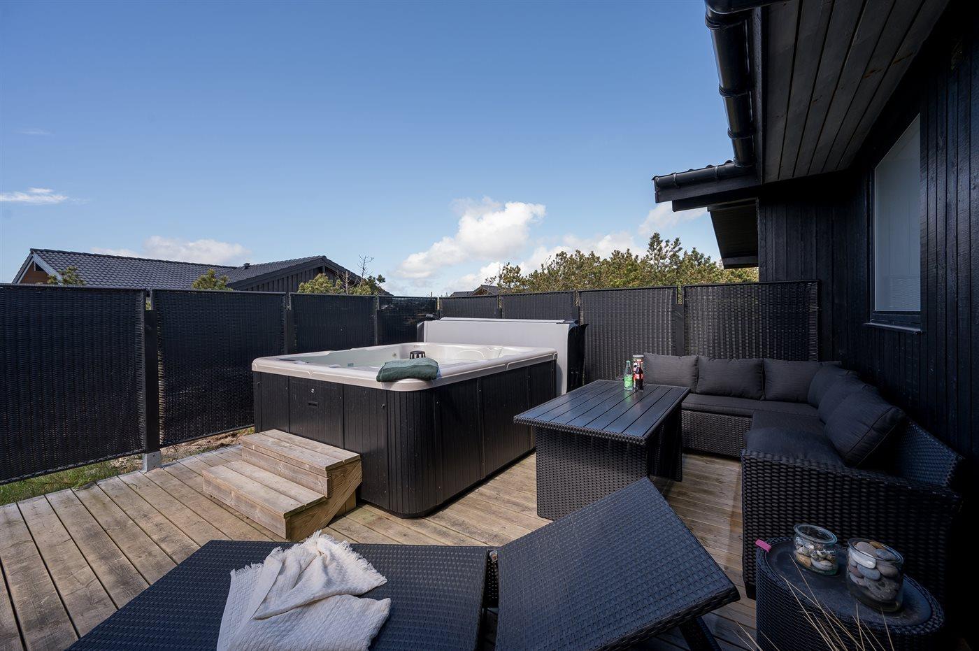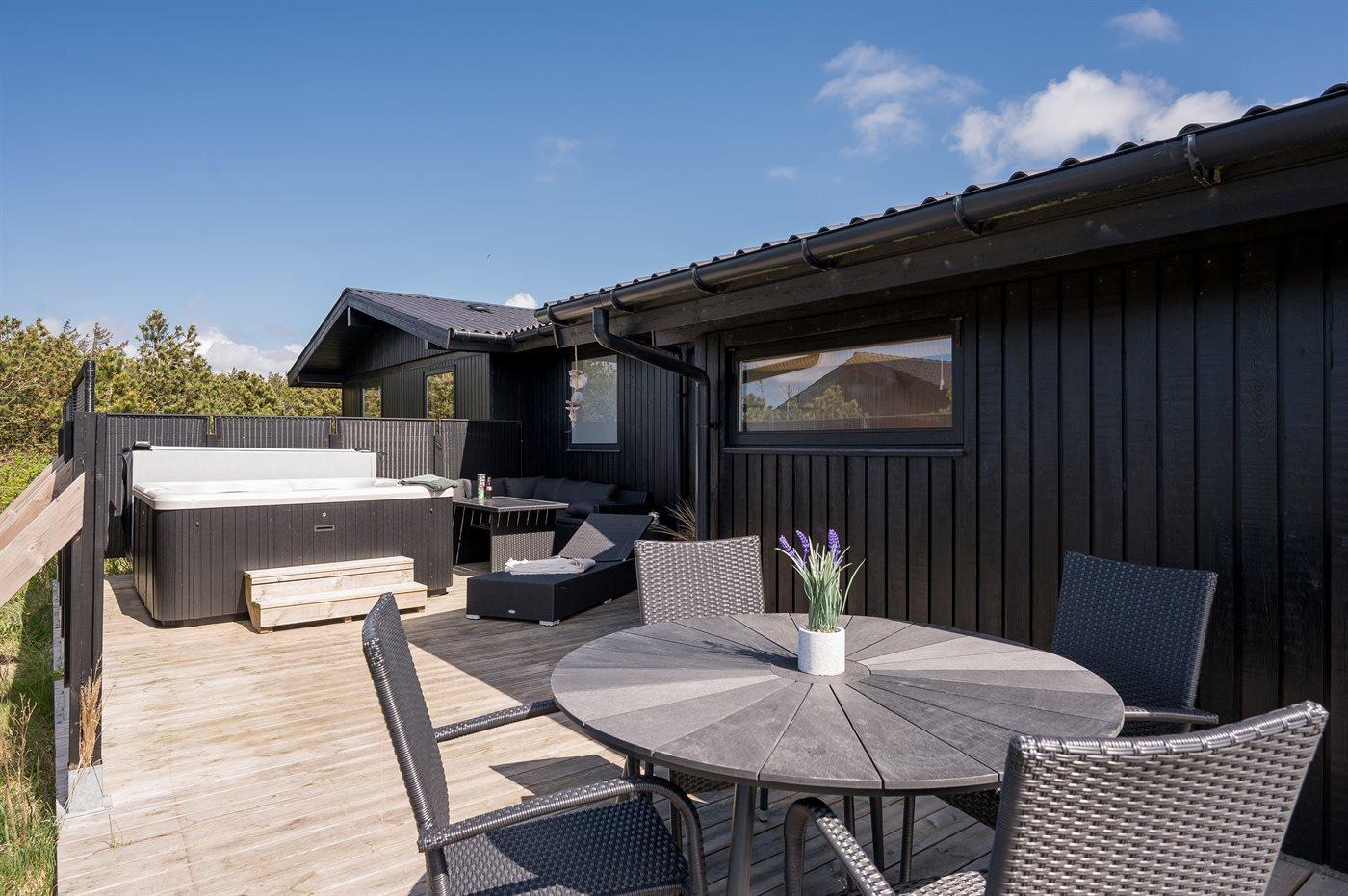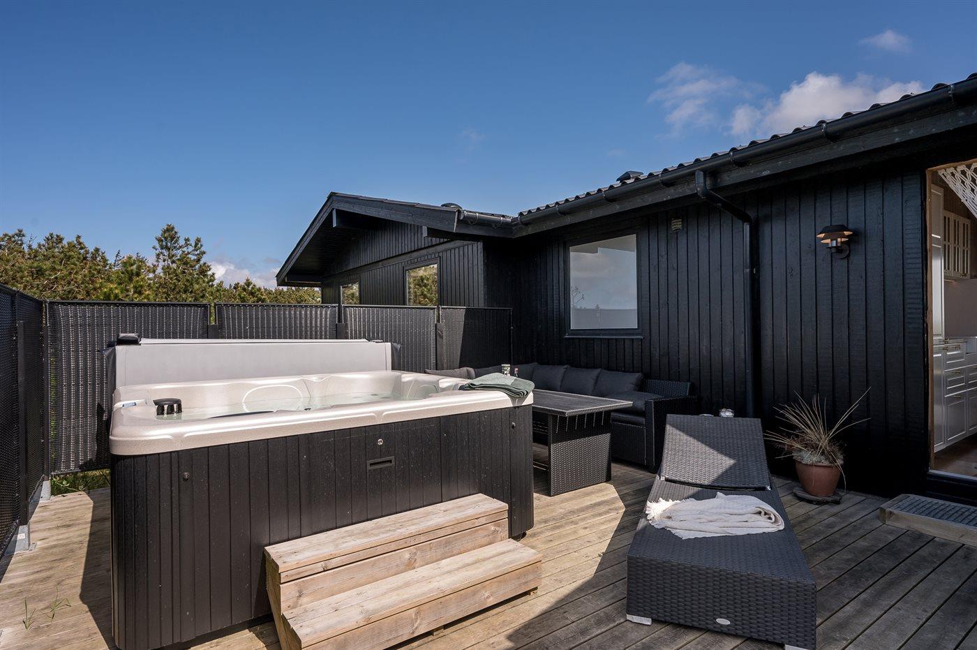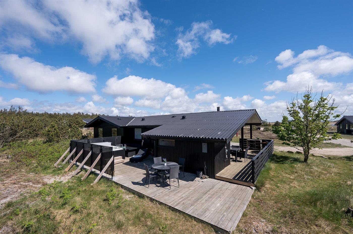 Idyllisches Ferienhaus mit Meerblick, Whirlpool und großer Terrasse in Hvide Sande, ideal für Erholung in der Natur.