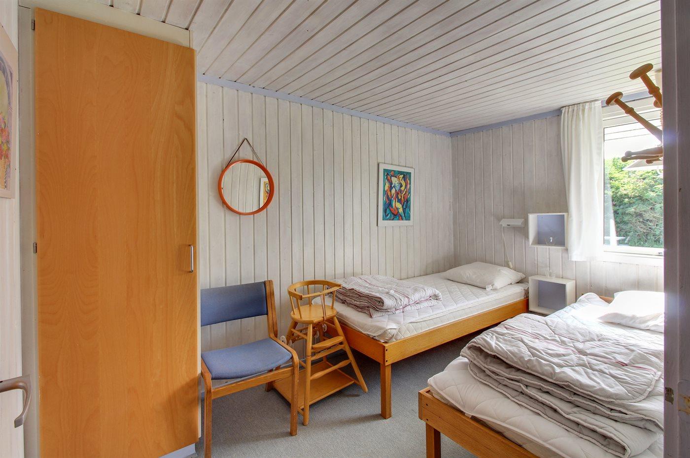 Die Schlafplätze verteilen sich auf 3 Schlafräume. 2 Schlafplätze in einem Doppelbett. 2 Schlafplätze in Einzelbetten. 2 Schlafplätze in einem Etagenbett. Ferner steht ein Kinderbett zur Verfügung.