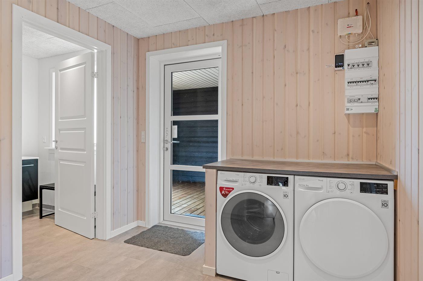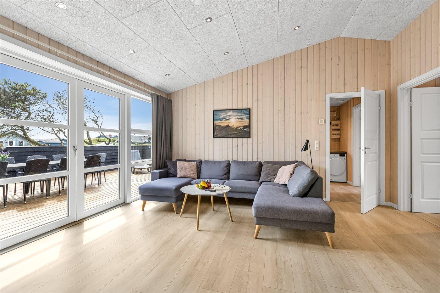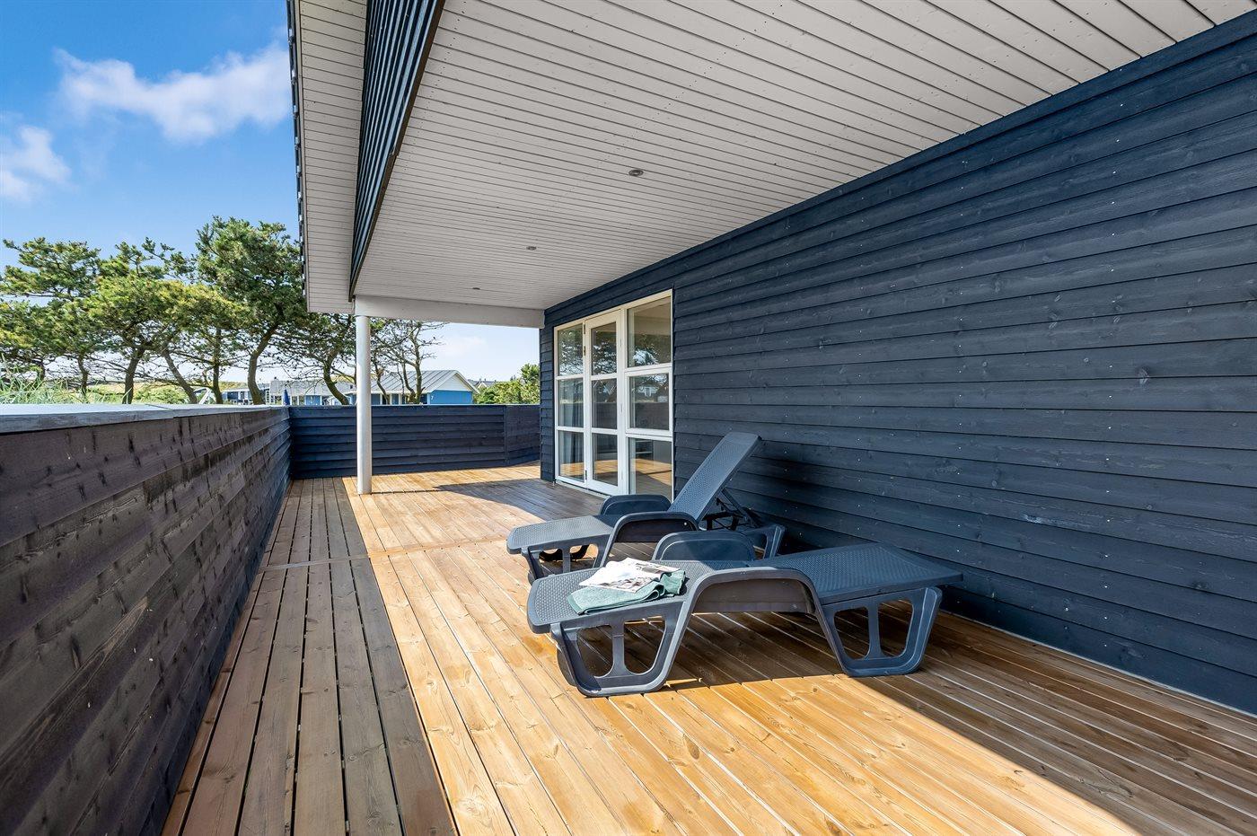 Das Ferienhaus verfügt über 5 Schlafzimmer und 2 Badezimmer sowie einen großen Hauswirtschaftsraum mit Waschmaschine und Wäschetrockner. Zum Haus gehört eine schöne Terrassenfläche mit mehreren eingezäunten Terrassen. Die unterschiedlich platzierten Terrassen ermöglichen es, den ganzen Tag über Schutz vor dem Wind und der Sonne zu finden.