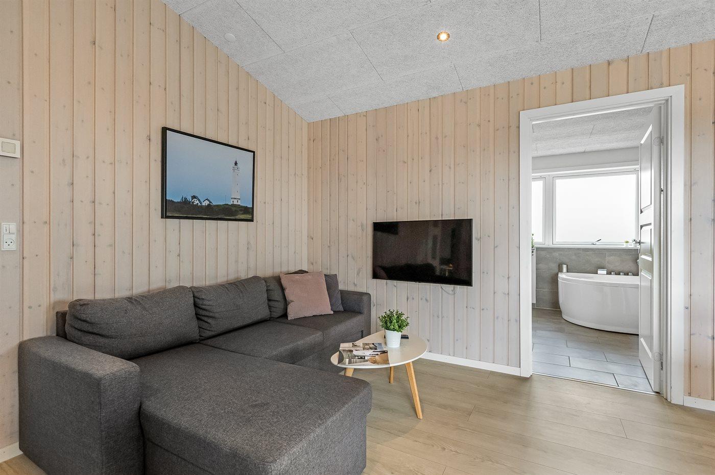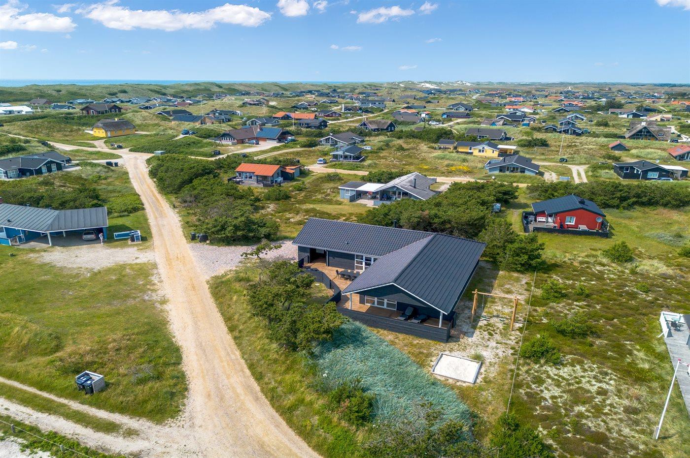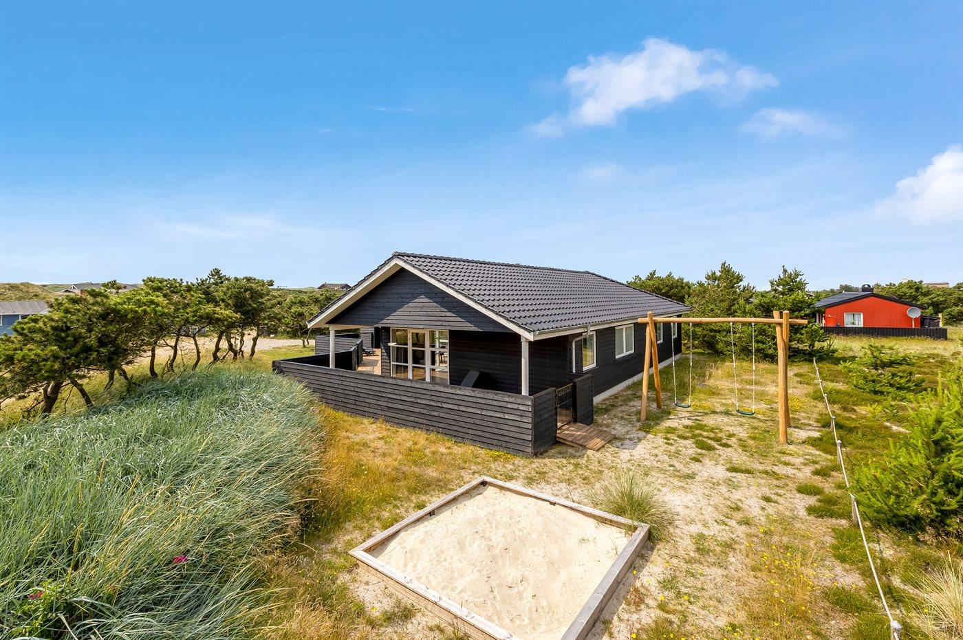 Das Ferienhaus liegt in der schönen Dünenlandschaft und besticht mit der ganz besonderen Atmosphäre die entsteht, wenn so nahe an der Nordsee wohnt. Der gemütliche Fischerort Hvide Sande liegt nur eine kurze Autofahrt entfernt – hier kannst du frischen Fisch kaufen, ein leckeres Mittagessen genießen oder einen Einkaufsbummel unternehmen. Wenn du einen aktiven Urlaub bevorzugst, gibt es gute Möglichkeiten für lange Spaziergänge und Radtouren auf den Pfaden, die sich durch die Dünen und die Ferienhausgebiete schlängeln. Das Gebiet ist auch für seine guten Surf-Möglichkeiten sowohl an der Nordsee als auch am Ringkøbing Fjord bekannt.