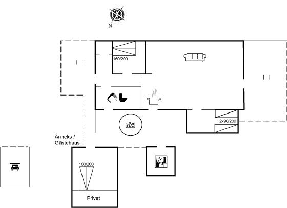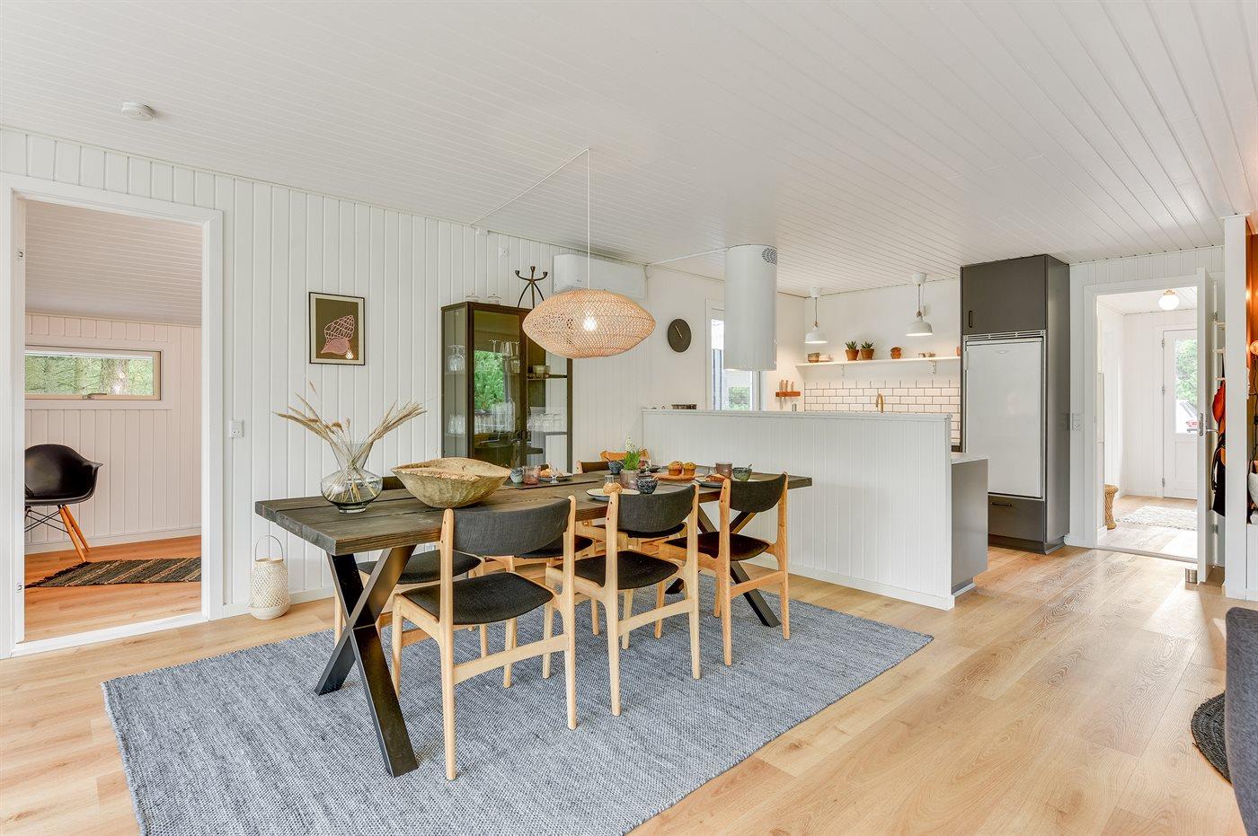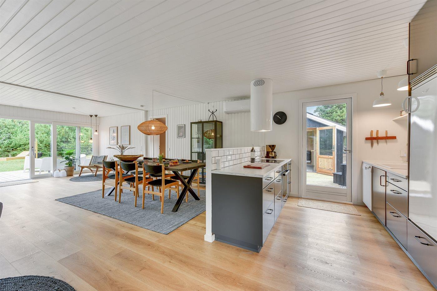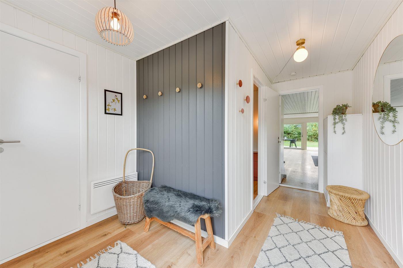 Auf einem 2075 m2 großen Naturgrundstück, von Bäumen umgeben und in einem Gebiet mit einem reichen Vogelleben, finden Sie dieses Ferienhaus. Das Haus liegt 900 m vom Meer und 1400 vom Fjord entfernt. Die nächste Einkaufsmöglichekeit finden Sie in einem Abstand von 600 m. Ein gemütlich und hell eingerichtetes Ferienhaus in einem Gebiet mit guten Aktivitätsmöglichkeiten. Das Ferienhaus eignet sich für 6 Personen. Die Wohnfläche beträgt 97 m2 und es stehen zusätzlich 2 Gästehäuser zur Verfügung mit einer Wohnfläche von 18 m2 beziehungsweise 6 m2. Das Haus wurde 1977 gebaut und 2020 völlig renoviert mit u. a. neuem Badezimmer, neuen Terrassen, eine komplette modernisierung der übrigen Räume sowie eine neue Sauna im kleinen Gästehaus. Zum Ferienhaus gehört eine mehr als 60 m2 große Terrassenfläche die sich auf 3 Terrassen verteilt. Durch die 2 großen Schiebetüren im Wohnzimmer gelangen Sie auf die große, in westlicher Richtung liegende Terrasse mit Esstisch und Lounge-Abteilung. Außerdem steht ein Hot-Tub zur Verfügung. Die Küche ist modernisiert und u. a. mit Kühlschrank, Induktionskochfeld, Umluftofen, Mikrowelle und Geschirrspüler ausgestattet. Von der Küche haben Sie Zutritt zur der in nordwestlicher Richtung liegenden Terrasse. Die Schlafplätze verteilen sich auf 2 gute Schlafzimmer im Ferienhaus; 1 mit Doppelbett und 1 mit 2 Einzelbetten. Außerdem gibt es ein Schlafzimmer mit Doppelbett in dem großen Gästehaus. Der große Aufenhaltsraum (55 m2) mit Alkoven lädt zum gemütlichen Beisammensein ein. Durch die großen Schiebetüren fällt die Sonne großzügig in den Raum. Lassen Sie die Türen offen stehen fließt die herrliche frische Luft in den Raum. Der neue Kaminofen sorgt für wohlige Wärme an kalten Tagen. Es gibt ein großes Badezimmer mit Duschnische, Toilette, Waschmaschine und Fußbodenheizung. Vom Badezimmer aus haben Sie Zugang zur Terrasse mit Hot-Tub, Außendusche und Sauna. Es stehen 2 Flatscreen-Fernseher mit Chromecast zur Verfügung. Der Fernseher im Aufenthaltsraum verfügt außerdem über Satellitenanschluss. Es ist kostenlose kabellose Internetverbindung sowie Soundsystem Sonos Move vorhanden. Es sind 2 energiesparende Wärmepumpen installiert die in den Sommermonaten auch als Aircondition funktionieren. Es ist nicht erlaubt Haustiere mitzubringen. Carport steht zur Verfügung. Es ist ein Ladestecker für Elektroautos installiert.