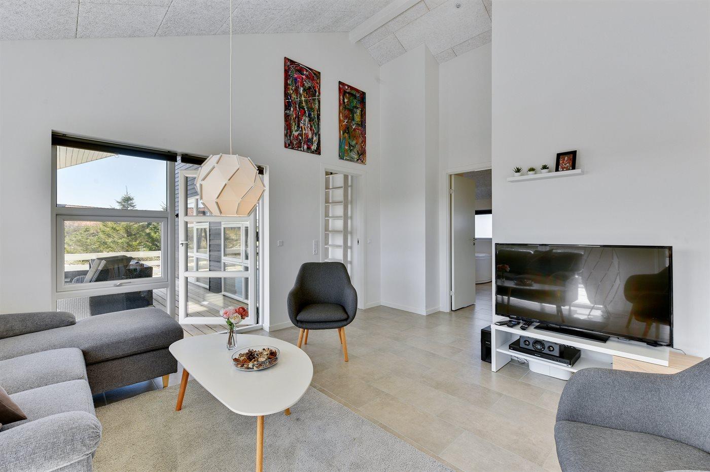 Dieses herrliche neu erbaute Ferienhaus lädt zum gemütlichen Beisammensein ein. Das Haus liegt in ruhiger Umgebung nicht weit von der Nordsee entfernt – und hat diese ganze besondere Atmosphäre – die man nur in einem Ferienhaus, das dicht an der Küste liegt spürt. Für diejenigen, die den aktiven Urlaub bevorzugen gibt es gute Rad- und Wanderwege z. B. kann man von Bjerregard aus entweder zu Fuß oder mit dem Rad entlang der Landzunge Holmsland Klit, auf sich durch Dünen und Ferienhausgebiete schlängelnde Wege, bis nach Söndervig gelangen. Übrigens: Zusätzlich zu den 3 Schlafzimmern gibt es ein Doppelbett im offenen Obergeschoss.