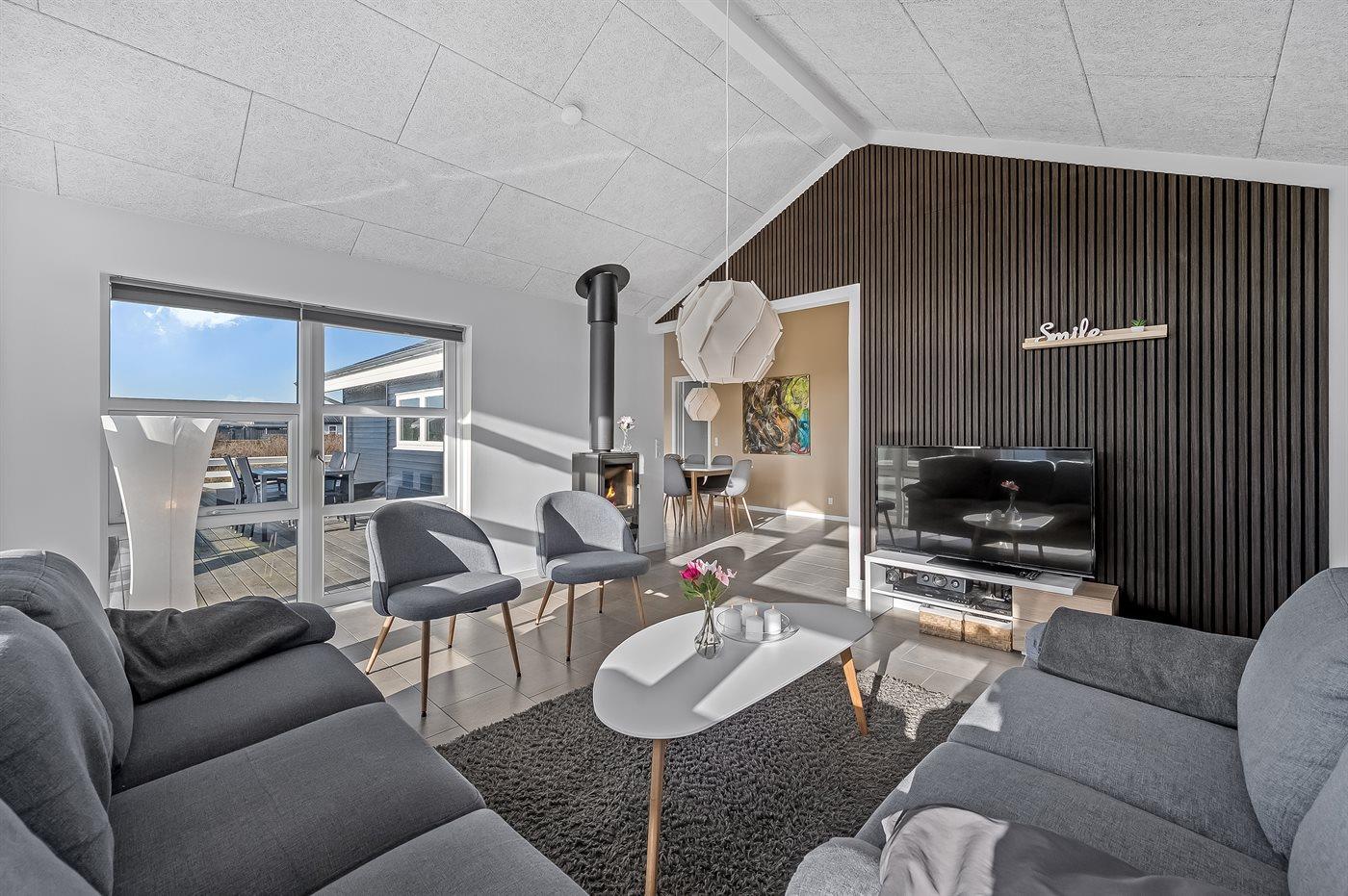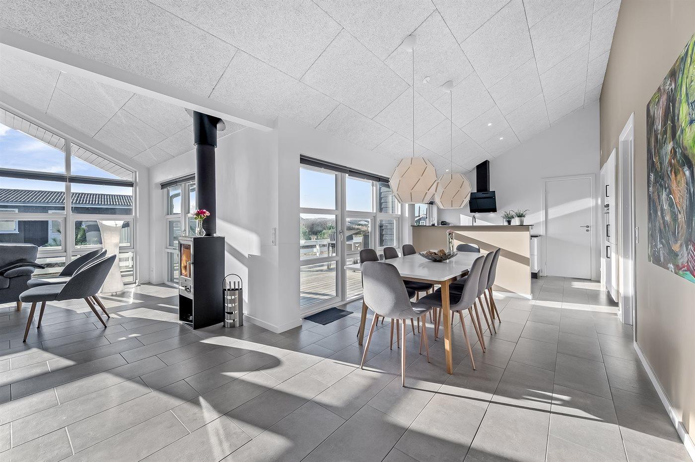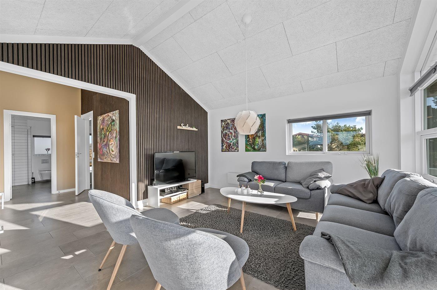 In diesem schönen neu erbauten (2019) Ferienhaus mit viel Platz gibt es gute Möglichkeiten für viele Stunden Gemütlichkeit. Das Haus liegt in einer ruhigen Umgebung zwischen Meer und Fjord. Wenn Sie aktiv sein möchten, bietet die malerische Umgebung viele Wander- und Radwege. Das Haus ist hell und einladend eingerichtet und hat einen offenes Obergeschoss, wo sich 2 der Schlafplätze befinden.