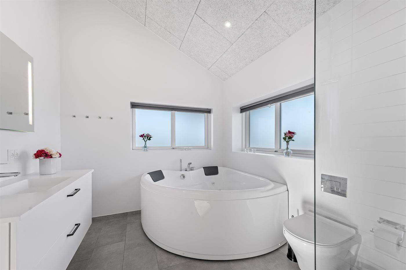 Modernes Ferienhaus mit Whirlpool, Sauna und Hobbyraum nahe Meer und Fjord in Dänemark.